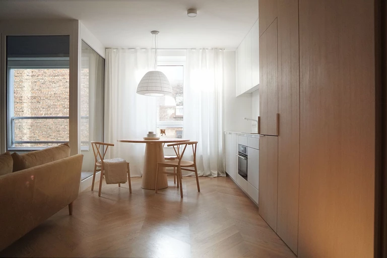 Zaprojektowane przez Magdę i Dominikę z pracowni The Line Studio mieszkanie o powierzchni 65 m² znajduje się w cichej dzielnicy Krakowa, tuż przy Lasku Wolskim. Projekt idealnie odzwierciedla potrzeby właścicielki – młodej lekarki, która po intensywnych dniach pracy szuka odpoczynku i kontaktu z...