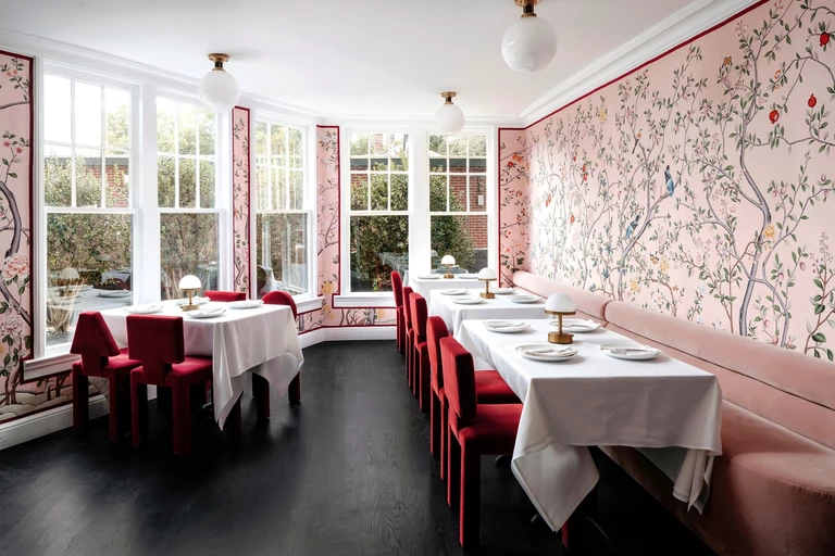 Króluje tu styl art déco, który wyrażają w przemyślany sposób dobrana paleta kolorów, materiałów oraz dodatki. W celu uzyskania wrażenia elegancji i luksusu postawiono na takie surowce, jak marmur i aksamit.  Nie brakuje tu także mosiężnych elementów. Oprócz różu we wnętrzu znalazła się chłodna zieleń oraz jaskrawe czerwienie, nadające przestrzeni wyrazisty charakter. Styl projektowania wnętrz z czasów dwudziestolecia międzywojennego przywołują także kryształowe żyrandole, który stanowią świetny, ponadczasowy wybór.