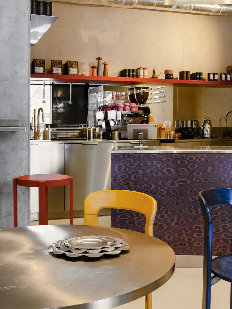 Projekt wnętrza Wasalaa Space łączy wiele funkcji. Architektki podzieliły lokal na kilka wyraźnie zdefiniowanych stref, które płynnie się przenikają, tworząc spójną, a zarazem zróżnicowaną narrację wizualną. Kluczem do zrozumienia tego projektu jest świadome zestawienie surowych, technicznych materiałów z unikatowymi materiałami oraz bogatą kolekcją mebli vintage.