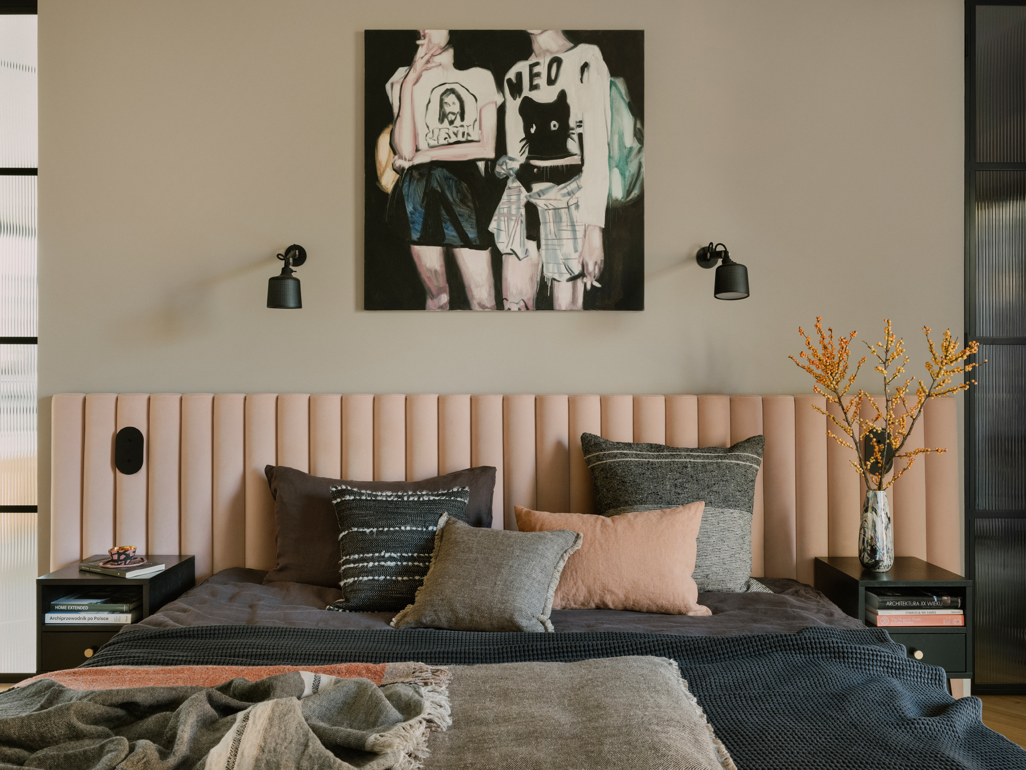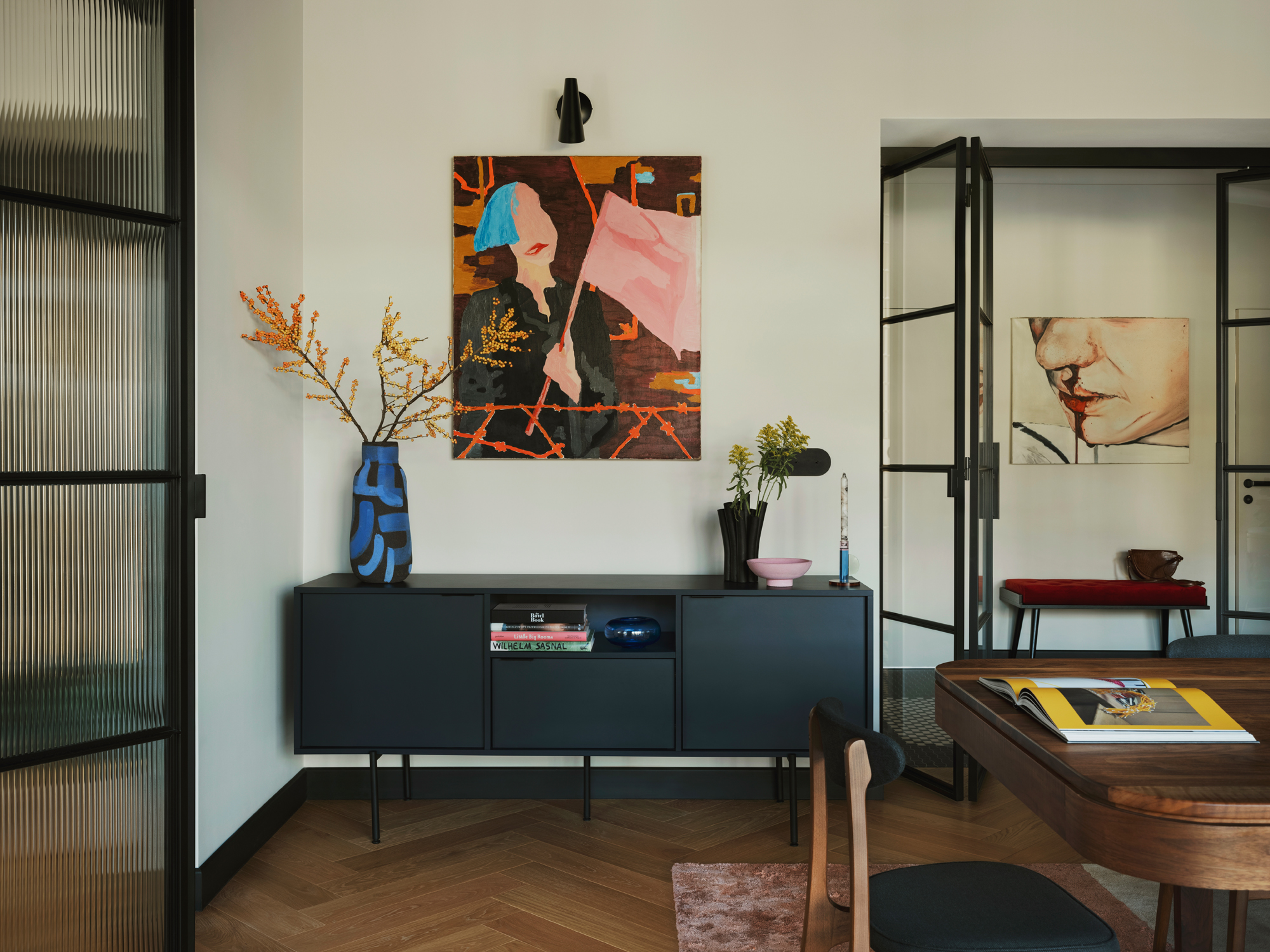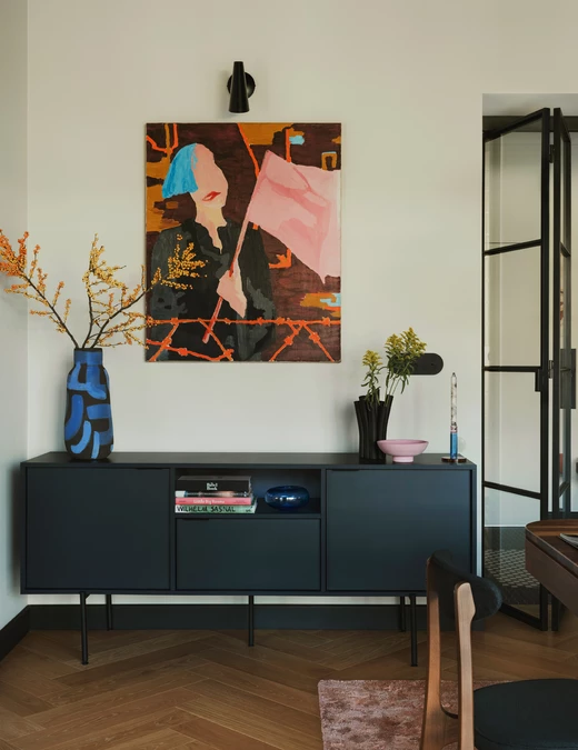 Wnętrza willi dopełnia sztuka. Właściciele, związani z lokalną sceną artystyczną, udekorowali dom obrazami zaprzyjaźnionej artystki, Anny Michalewicz.