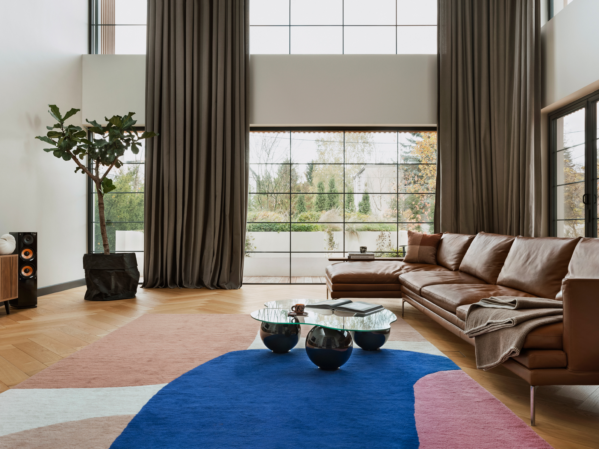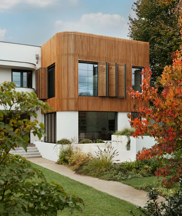Adaptacja starego budynku do nowych funkcji i połączenie go z rozbudowaną częścią stanowiło spore wyzwanie. Skomplikowanym przedsięwzięciem okazała się kwestia przesłon okiennych. Wysoki na 8 metrów salon z licznymi przeszkleniami wymagał zaprojektowania inteligentnego systemu automatycznych żaluzji zewnętrznych. Największym wyzwaniem technicznym był jednak montaż żaluzji na zakrzywionym oknie w holu wejściowym, które mierzy 4,5 metra wysokości.