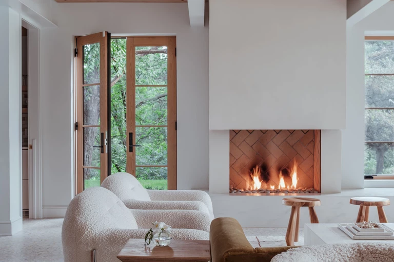 Wittman postawił na to, co najpiękniejsze w tym miejscu – naturę. W holu masywną klatkę schodową zastąpił elegancką, wijącą się konstrukcją. Okna i drzwi poszerzył i podniósł, wpuszczając widoki na jezioro. Nowe drzwi z białego dębu i stalowo-cedrowa pergola przyniosły kalifornijski klimat, nie naruszając klasycznej fasady.