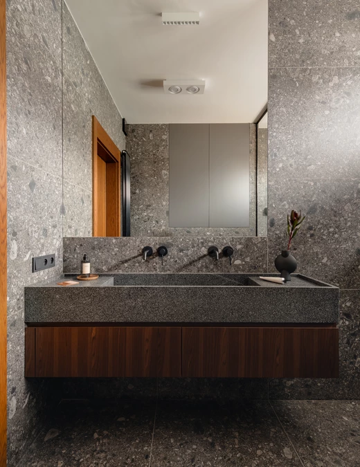 Projekt autorstwa Justyny Ławrynowicz i Patryka Ławrynowicza z pracowni 3XEL Architekci koncentruje się na codziennym komforcie mieszkańców. Konsekwencja w użyciu materiałów i czytelne rozwiązania przestrzenne budują wnętrze, które pozostaje aktualne niezależnie od zmieniających się trendów.