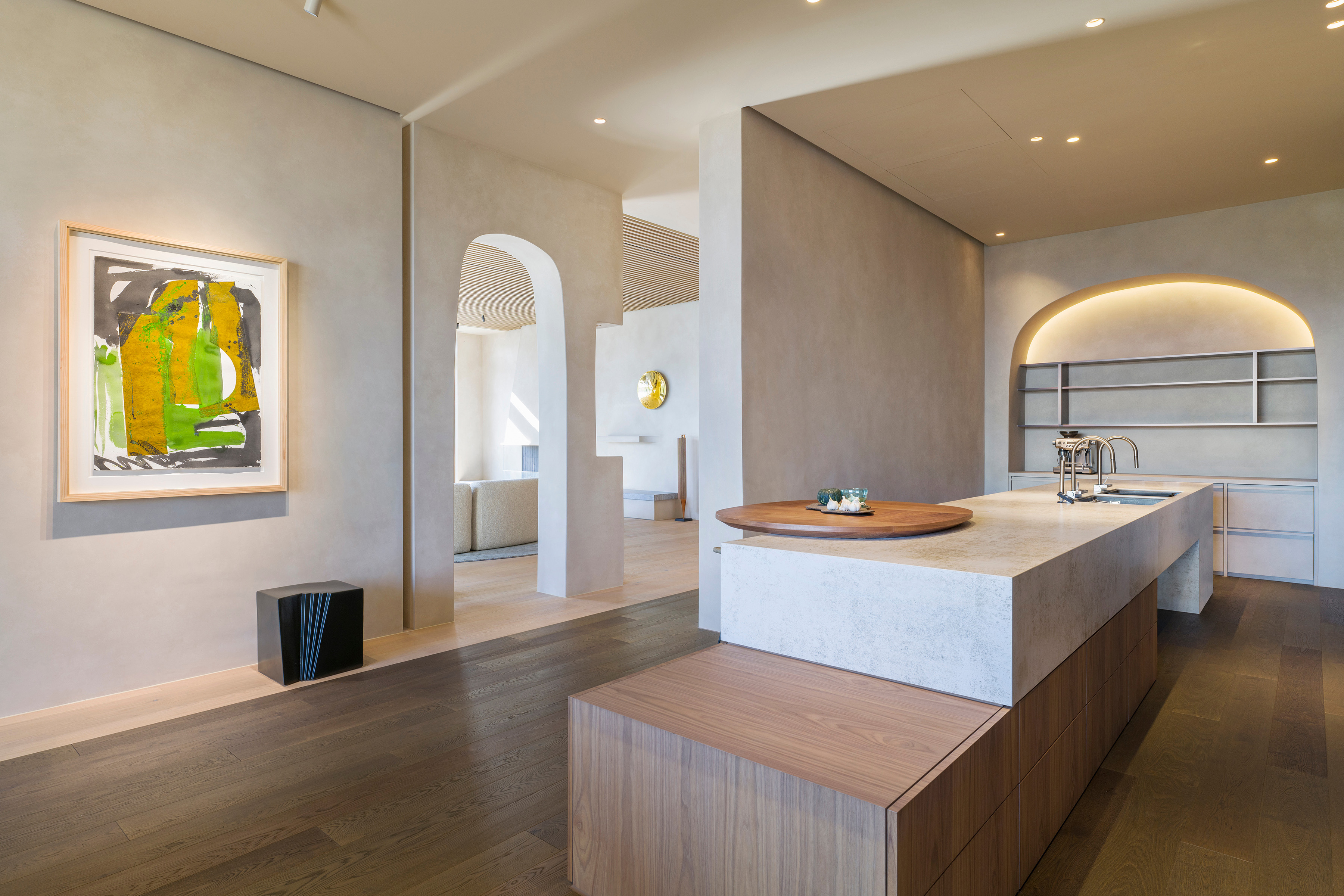 Wnętrze willi stało się także tłem dla starannie wyselekcjonowanej kolekcji sztuki, w której znalazły się prace takich artystów jak Draga & Aurel, Bruno Moinard, Christophe Delcourt i Paul Bik. Każde z dzieł prowadzi dialog z główną ideą projektu – przełożeniem otaczającego krajobrazu na konkretne, namacalne doświadczenie wewnątrz domu.