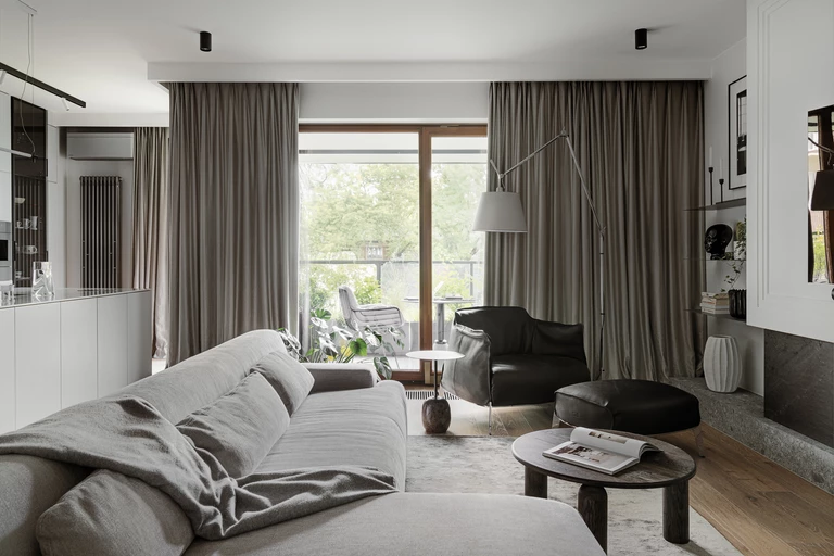„Od samego początku zachwyciło mnie umiłowanie inwestorki do koloru szarego. Z reguły klienci oczekują, żeby ich wnętrza były ciepłe i przytulne, dlatego z góry przekreślają szarości, twierdząc, że to zimny kolor. A to błąd. Kolor szary jest barwą neutralną, czymś pomiędzy ciepłym a zimnym odcieniem” - wyjaśnia Filip Domagała z pracowni DOMagała Design. Neutralne szarości w tym apartamencie zostały umiejętnie połączone z naturalnymi, zgaszonymi barwami drewna, tworząc przestrzeń przypominającą skandynawskie lub belgijskie wnętrza, będącą oazą spokoju w samym sercu tętniącego życiem miasta.