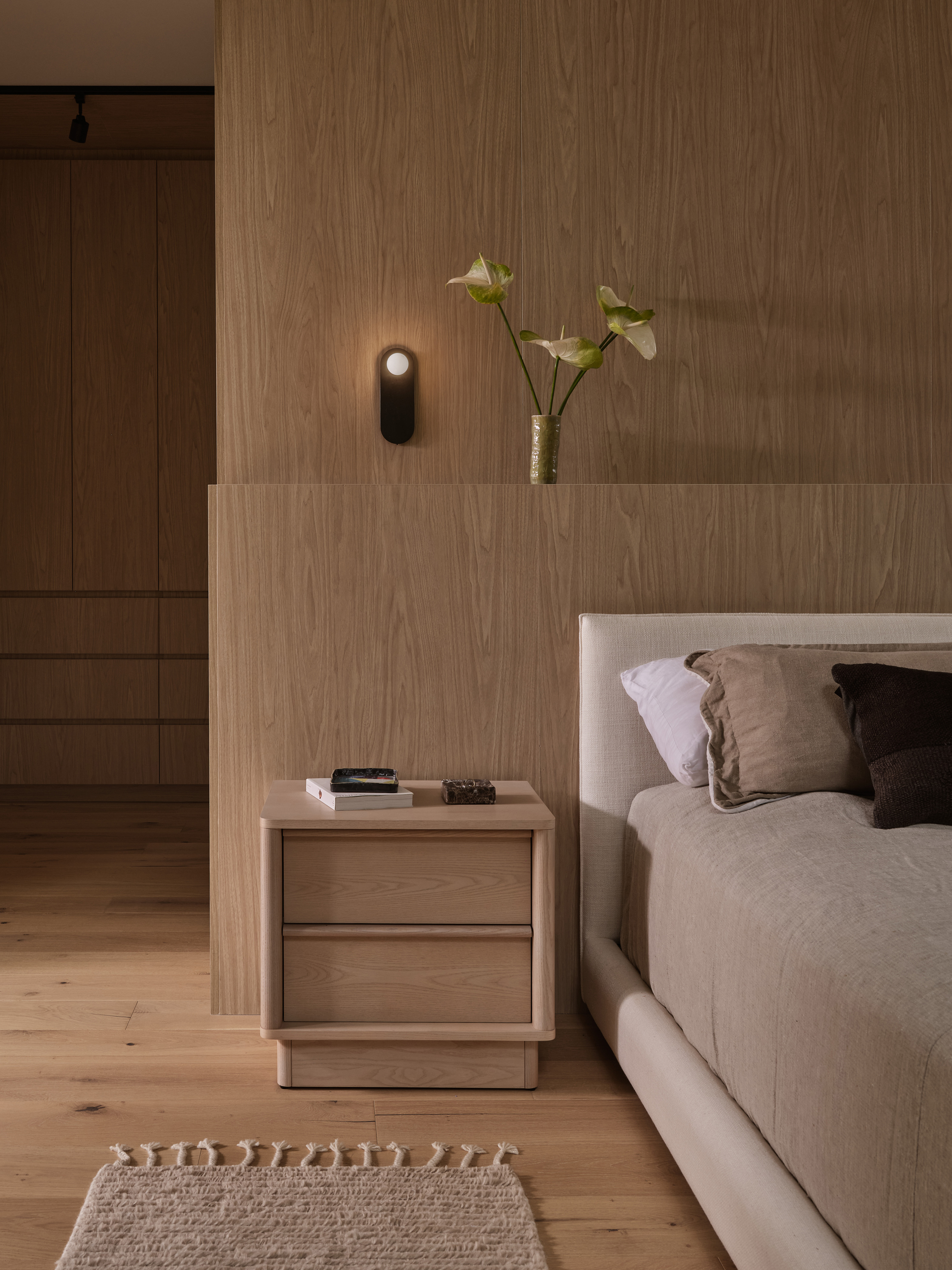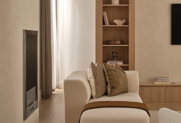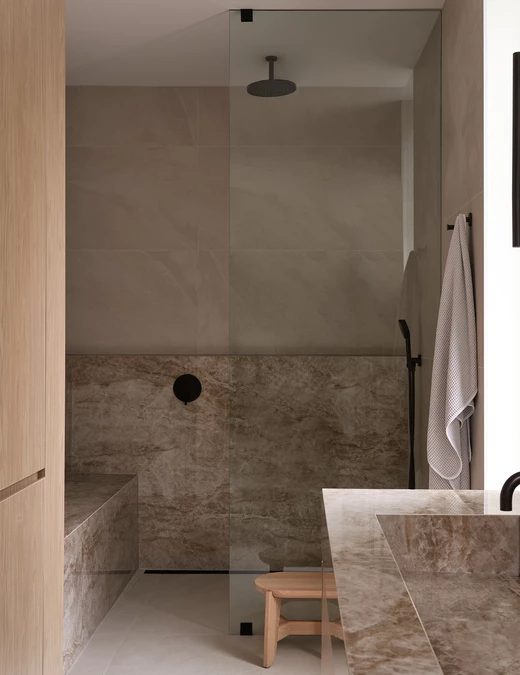Cały proces projektowy, od architektury po najdrobniejszy detal wnętrza, opierał się na trzech zasadach: elegancji, świeżości i spokoju. To one kształtowały każdą decyzję. Celem było stworzenie przestrzeni, która regeneruje i daje poczucie ugruntowania, a która będzie ewoluować z wdziękiem wraz z jej mieszkańcami.