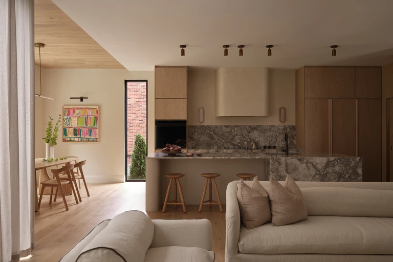 Na dojrzałych, porośniętych drzewami przedmieściach na zachód od Toronto, w okolicy, gdzie nie ma dwóch takich samych domów, powstał Project 21. Zaprojektowany dla młodej rodziny, miał stać się azylem od szybkiego tempa współczesnego życia. Pracownia LN Studio, odpowiedzialna za wnętrza, we współpracy z architektami z SMPL Design Studio, stworzyła dom, który jest jednocześnie ponadczasowy i mocno osadzony we współczesności.