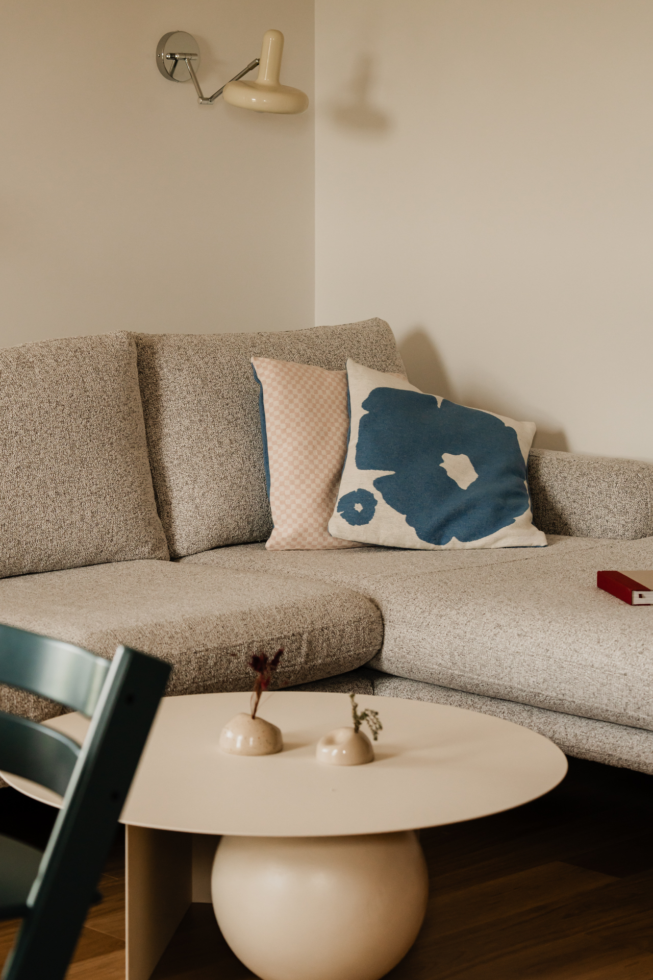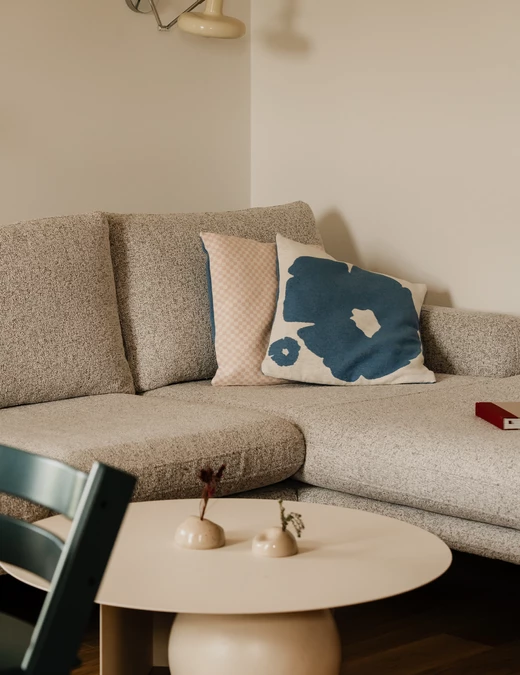 Jasne drewno, neutralne powierzchnie i miękkie przejścia między materiałami tworzą tło tego 90-metrowego mieszkania w Gdyni. Zaprojektowane zostało przez Sylwię Chojnacką i Filipa Chojnackiego z pracowni con studio dla małżeństwa z córeczką.