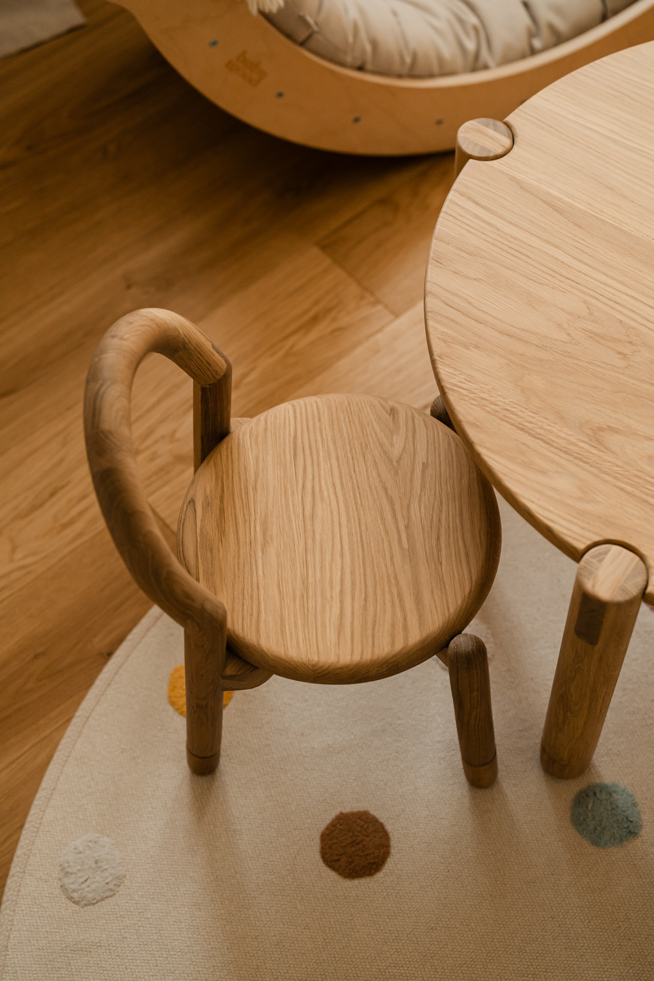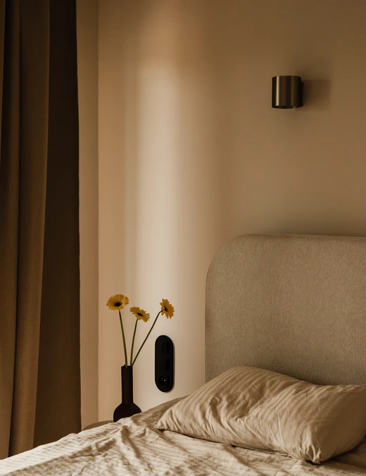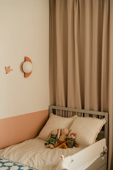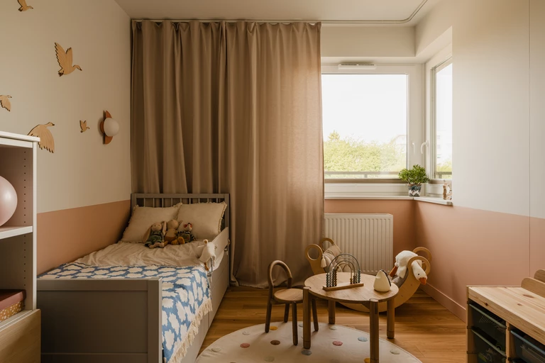 Wnętrze celowo unika nadmiaru bodźców. Zostało zaprojektowane tak, by mogło zmieniać się wraz z domownikami. Bez problemu przyjmie nowe grafiki, dodatki czy osobiste przedmioty, które nadadzą mu jeszcze więcej indywidualnego charakteru.