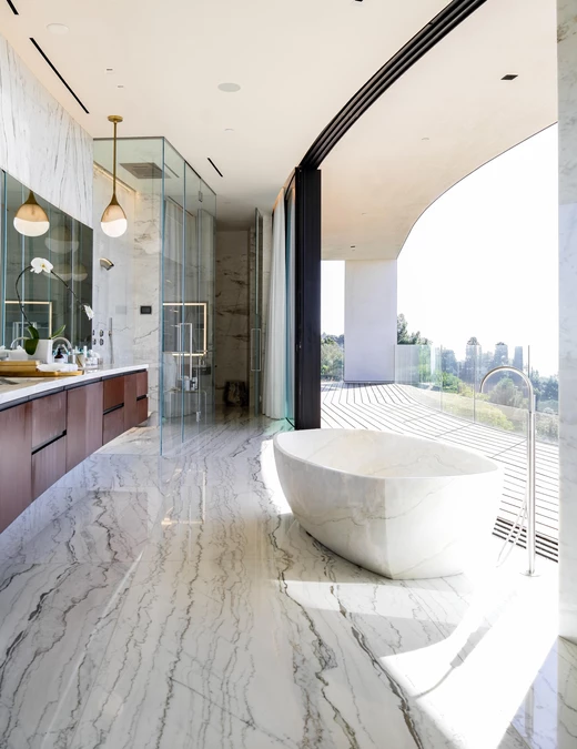 Studio z Los Angeles, kierowane przez niemieckiego architekta Gerharda Heuscha, słynie z tworzenia współczesnych środowisk w pełnej harmonii z ich naturalnym otoczeniem. Tym razem ich sygnatura - cicha elegancja i architektoniczna powściągliwość - zdefiniowała ten prywatny, położony na wzgórzu azyl.