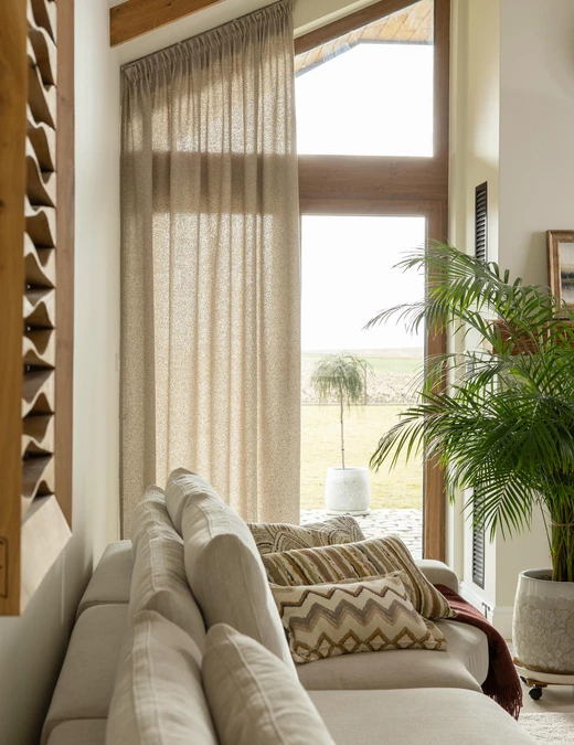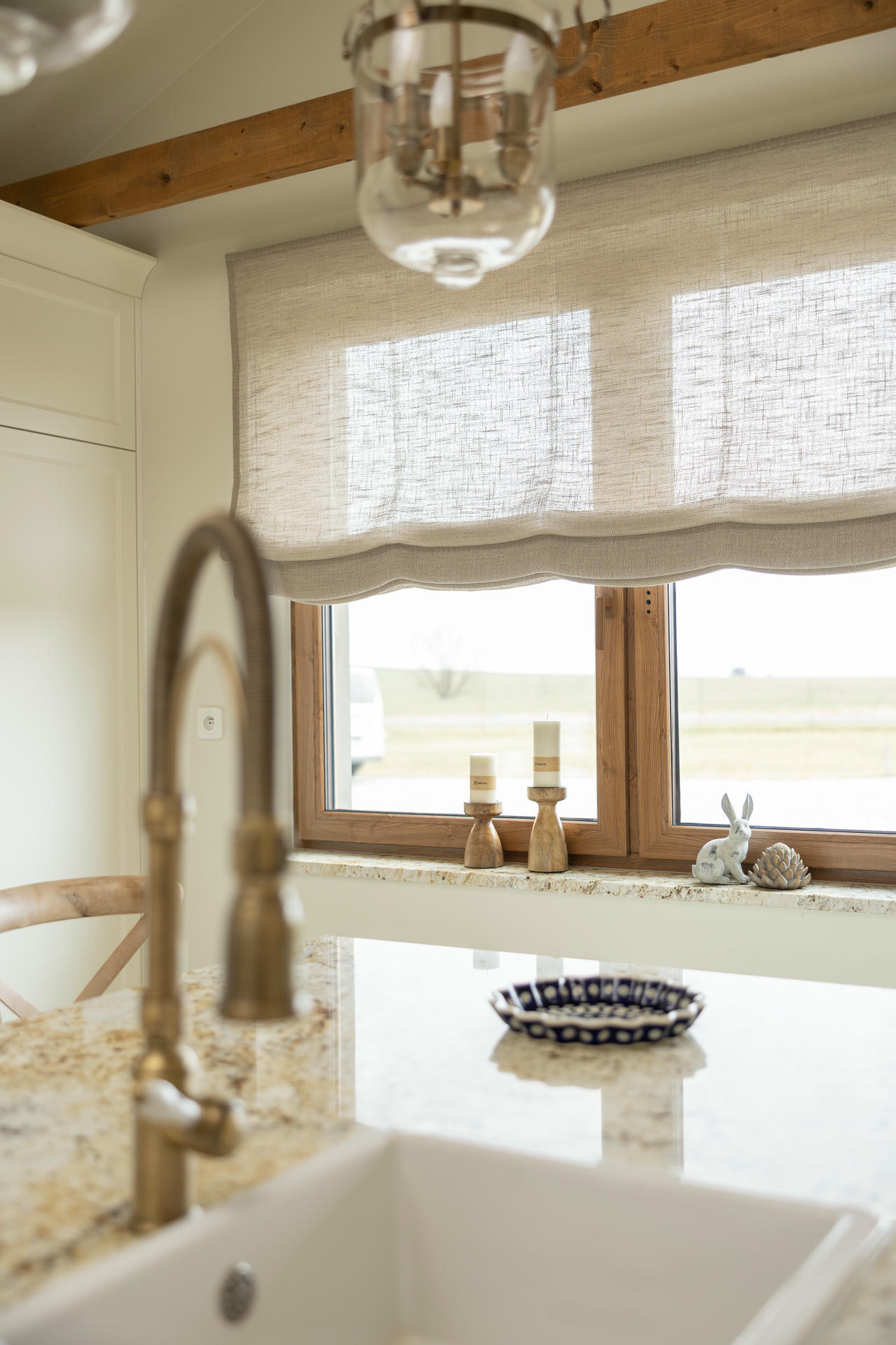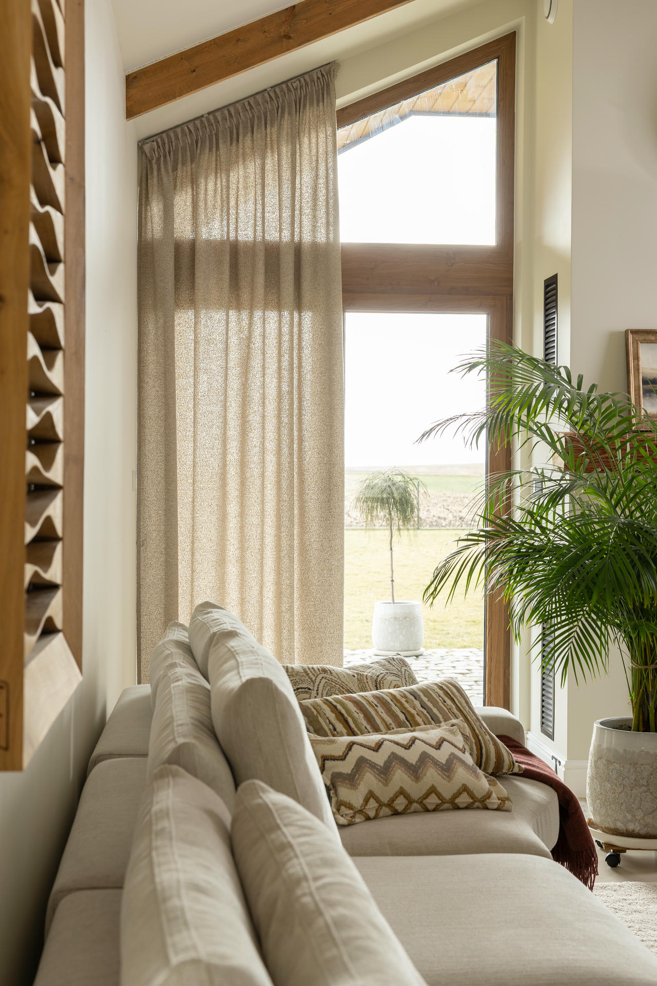 Okno nie jest wyłącznie źródłem naturalnego oświetlenia. To element architektury, który wyznacza proporcje ściany i porządkuje kompozycję. Jego oprawa - rozmiar i forma dekoracji okiennych, tkaniny, z jakich zostały uszyte - wpływa na to, jak postrzegamy wysokość pomieszczenia i jego charakter. Zasłony, firany czy rolety rzymskie planowane od początku, a nie dodawane na końcu, pozwalają zachować spójność projektu i w pełni wykorzystać potencjał światła.