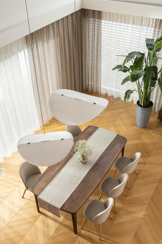 Każda przestrzeń ma swój charakter światła, wynikający z położenia, wielkości przeszkleń i otoczenia. Inaczej odbieramy światło w pomieszczeniach skierowanych na południe, gdzie bywa intensywne i kontrastowe, inaczej w tych z ekspozycją północną - bardziej stonowane i rozproszone. Znaczenie ma także wysokość okien, ich podział czy obecność wnęk. To właśnie te architektoniczne uwarunkowania w dużej mierze decydują o charakterze przestrzeni i o tym, jak powinna zostać zaprojektowana jej oprawa.