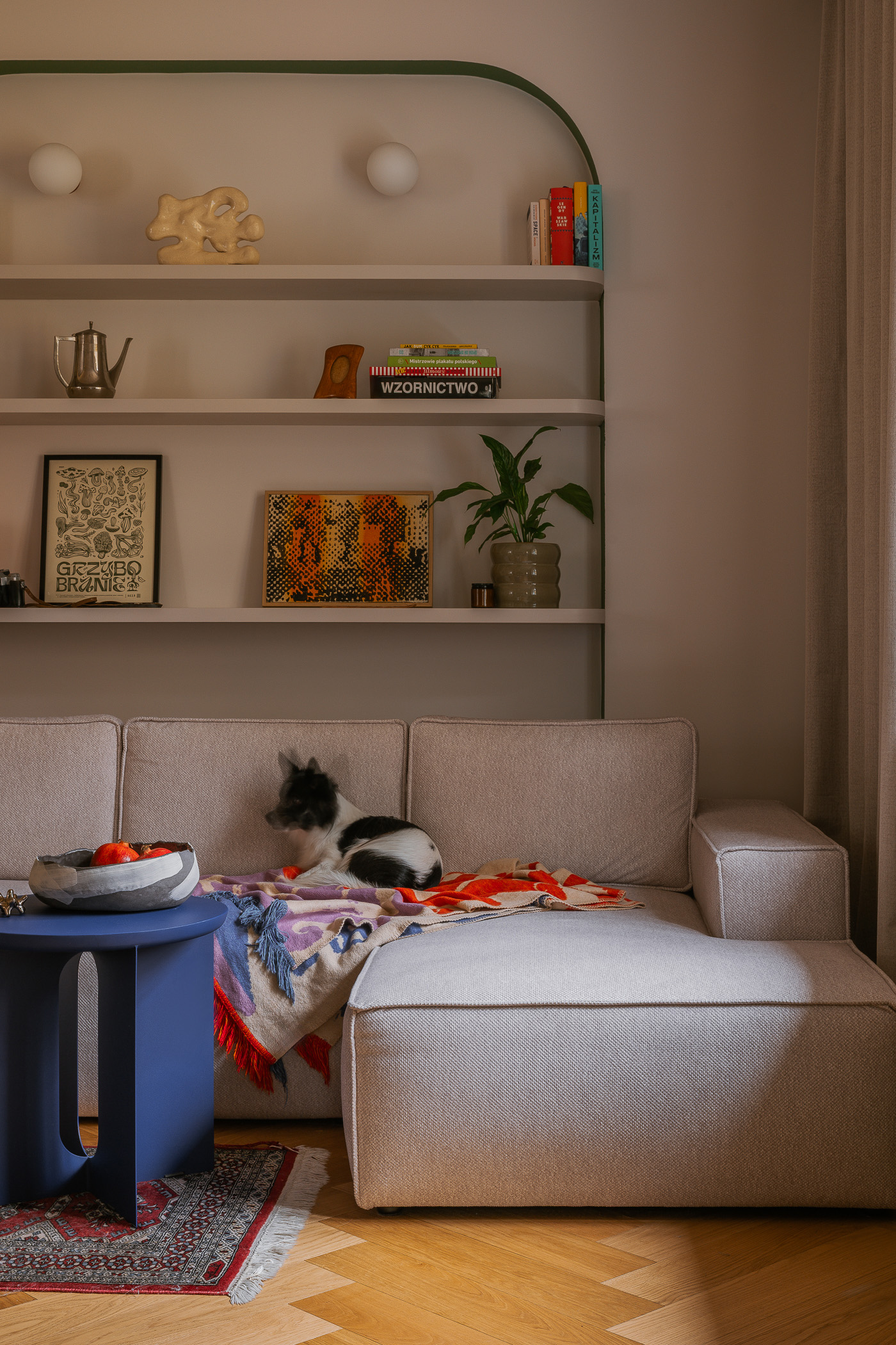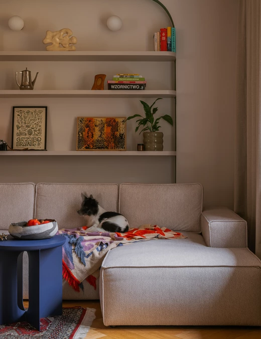 Projekt Jacka Gonery to przykład aranżacji syntetycznej. Nie ma tu przeładowania; każdy element – od książki na półce po ceramikę – ma swoje uzasadnione miejsce. To wnętrze, które udowadnia, że w 60-metrowym mieszkaniu w starej kamienicy można osiągnąć kompromis między wizualnym wyrafinowaniem a codzienną funkcjonalnością, wpisując się idealnie w charakter zabytkowej Oliwy.