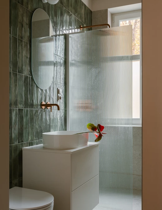 Historię dopełnia współczesność. Przestrzeń wzbogacają stalowe, dmuchane formy od Oskara Zięty oraz ceramika i sztuka użytkowa lokalnej artystki, Aleksandry Went. Warto zwrócić uwagę na oświetlenie – lampy to autorski projekt właściciela mieszkania, co nadaje wnętrzu unikatowy, osobisty rys i świadczy o dbałości o każdy, nawet najmniejszy detal.