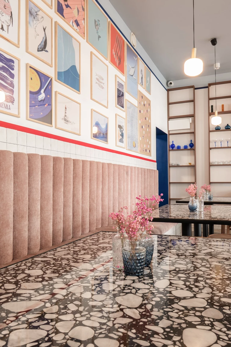 Wnętrze restauracji Syrenka to hołd dla ducha dawnych lat i radość nowego początku. Walka o każdy detal – zwłaszcza o oryginalne lastryko z kokolitami, które pamięta historię tego miejsca – zakończyła się sukcesem. Udało się zachować wyjątkowy charakter, a dopełnieniem całości jest polski design z najwyższej półki. Lampa projektu Pani Jurek, intensywne kolory i mnóstwo światła tworzą atmosferę, w której każdy detal ma znaczenie. Bo klimat rodzi się właśnie z drobiazgów – i z ludzi.