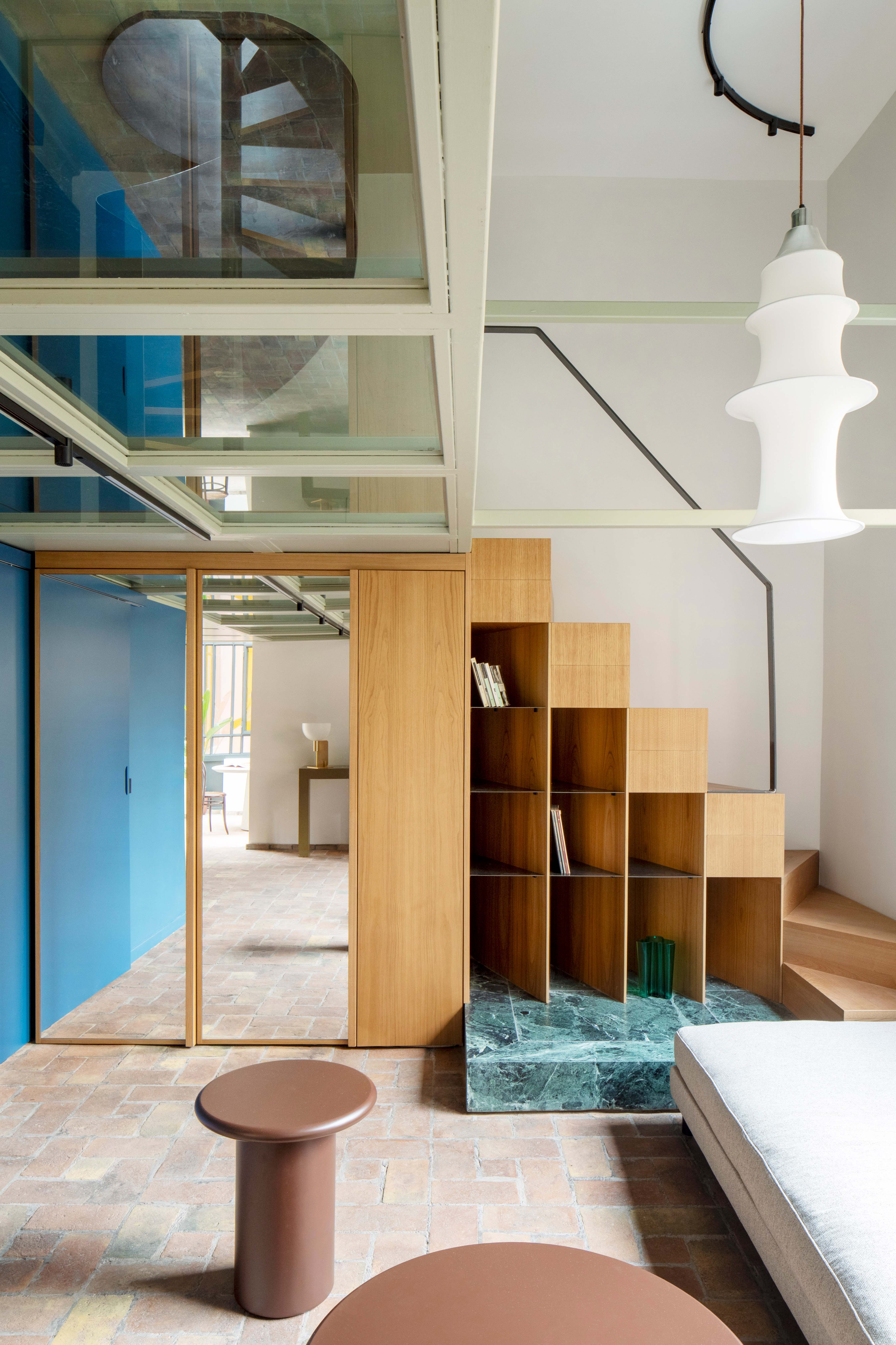 Szklana antresola i niebieski moduł w secesyjnych murach. STUDIOTAMAT w Rzymie