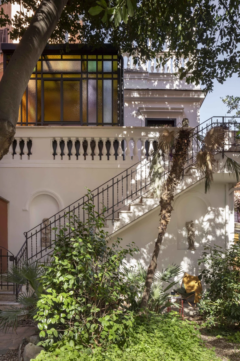 W ukrytym dziedzińcu przy Viale di Trastevere biuro architektoniczne STUDIOTAMAT tchnęło nowe życie w zapomniany secesyjny dom. Budynek, niegdyś pełniący funkcję domu dozorcy dawnego dworca kolejowego – lub, jak mówią niektórzy mieszkańcy, gabinetu dzielnicowego lekarza – został przekształcony w wyrafinowany, miejski azyl.