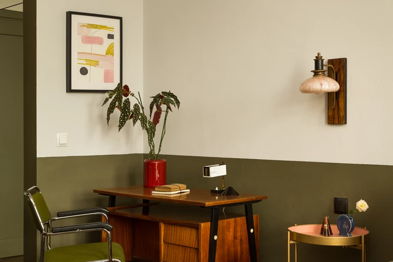 W wysokich na ponad 3 metry pomieszczeniach  projektantki postanowiły zachować wszystkie elementy historyczne, które dało się odrestaurować: plafony na sufitach, część stolarki okiennej, drzwi (przedwojenne drzwi prowadzą do łazienek i sypialni) i podłogi.