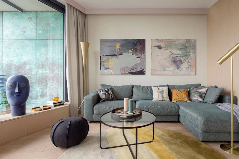 Młoda projektantka uwielbia łączyć tkaniny o różnych wzorach i fakturach. Był to punkt wyjścia dla pracowni projektowania wnętrz. Po wywiadzie przeprowadzonym z właścicielką na temat jej upodobań wnętrzarskich, architekci postanowili zastosować różnego rodzaju tkaniny, zróżnicowaną kolorystykę oscylującą w klasycznej palecie barw, stylowe, artystyczne dodatki skłaniające się ku kobiecej estetyce oraz rośliny, które zawsze dodają wnętrzu swobody (wszystkie rośliny oraz dekoracyjne donice pochodzą z firmy Tomaszewski). Pomyśleli, by projekt uzupełnić o oryginalny kamień - lastryko/terazzo, które stawia warszawski projekt w jednym z szeregu z innymi europejskimi realizacjami na światowym poziomie.