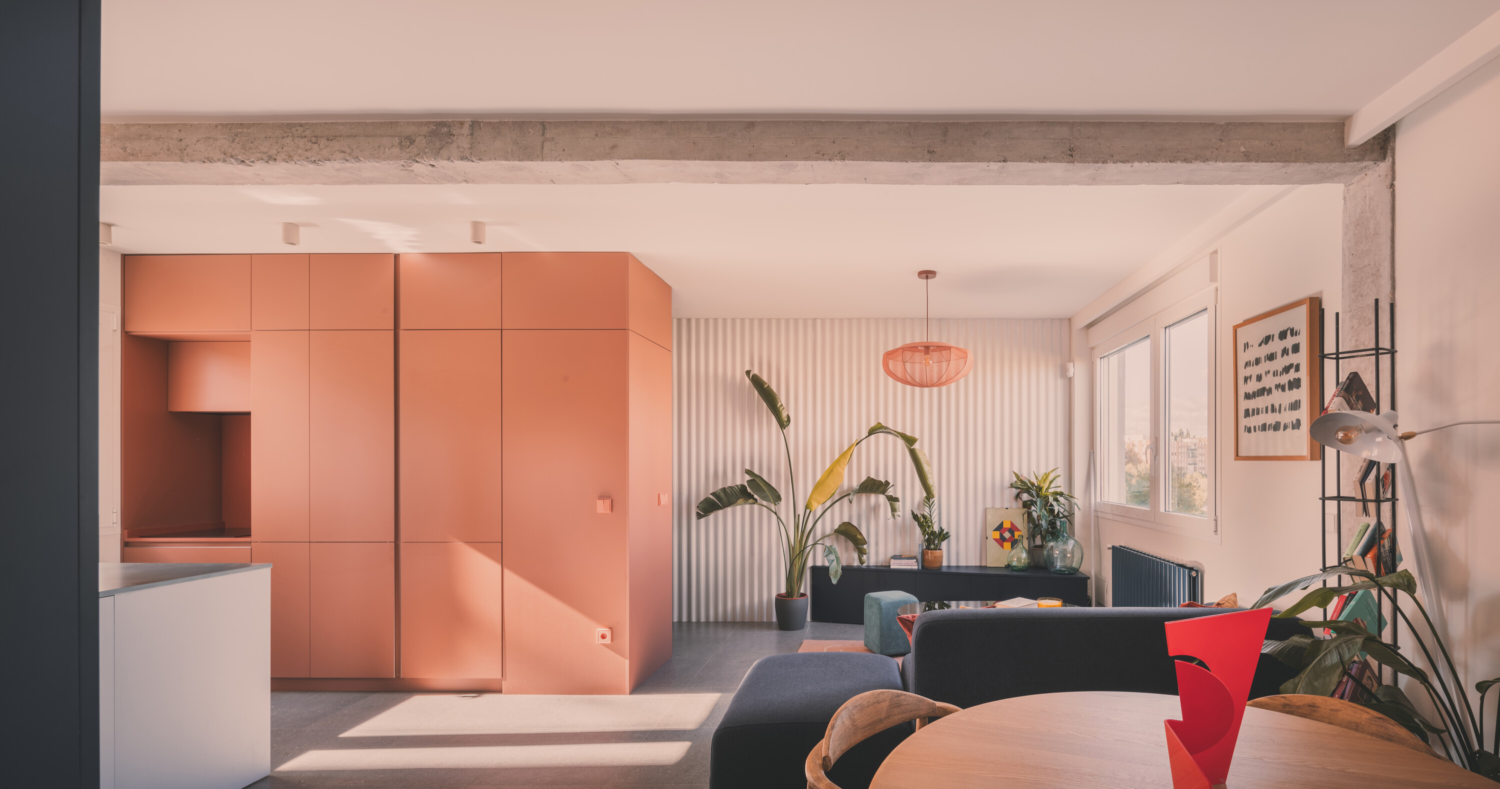 Architekci z pracowni OOIIO Architecture - Joaquín Millán Villamuelas i Federica Aridon Mamolar - rozpoczęli od całkowitego wyburzenia oryginalnego układu. Stworzyli otwartą, przewiewną przestrzeń, maksymalnie wykorzystując największy atut lokalu: okna na dwóch równoległych fasadach, które zapewniają doskonałe doświetlenie i wentylację.