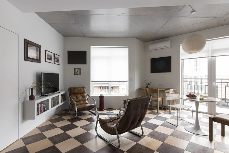 Kluczem do zrozumienia wielu wnętrz są ich mieszkańcy. Tak jest również w przypadku tego kijowskiego mieszkania, które należy do architektki wnętrz, Wiktorii Karevej, współzałożycielki pracowni Between the walls. Wiktoria ma w życiu dwie miłości: koty i sztukę współczesną. Każdej z nich poświęciła małą część mieszkania. Wielką pasją architektki są też stare meble, które sama odnawia. Ich również nie mogło zabraknąć w tym przytulnym, kompaktowym wnętrzu.
