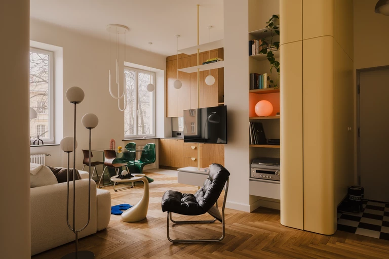 Zaprojektowane przez Magdę i Dominikę z pracowni The Line Studio mieszkanie o powierzchni 65 m² znajduje się w cichej dzielnicy Krakowa, tuż przy Lasku Wolskim. Projekt idealnie odzwierciedla potrzeby właścicielki – młodej lekarki, która po intensywnych dniach pracy szuka odpoczynku i kontaktu z...