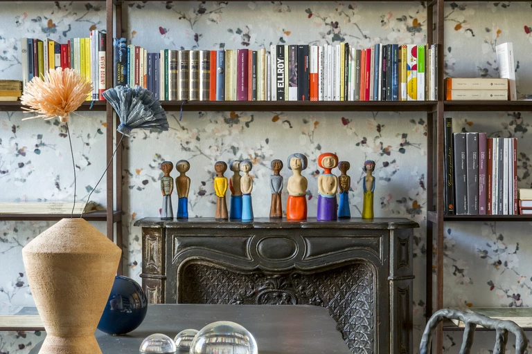 Za projekt dwupoziomowego mieszkania odpowiada studio Alvisi Kirimoto. Pierwszą zmianą było wydzielenie wejściowego holu, w którym zdecydowano się na eleganckie, półprzezroczyste drzwi. Umieszczono w nich lnianą tkaninę, dzięki której do części dziennej sączy się subtelne światło. W sypialni artystki znalazł się wykonany na zamówienie marmurowy kominek.