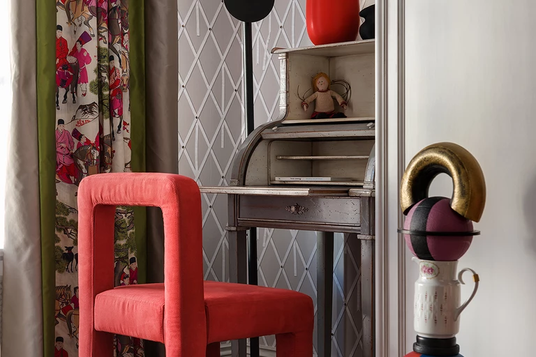 Alexandrine Lukach, ukraińska projektantka wnętrz, przekształciła klasyczne wnętrze tego 288 metrowego apartamentu w eklektyczną przestrzeń, w której znalazło się 196 obiektów autorstwa 42 ukraińskich projektantów i artystów.