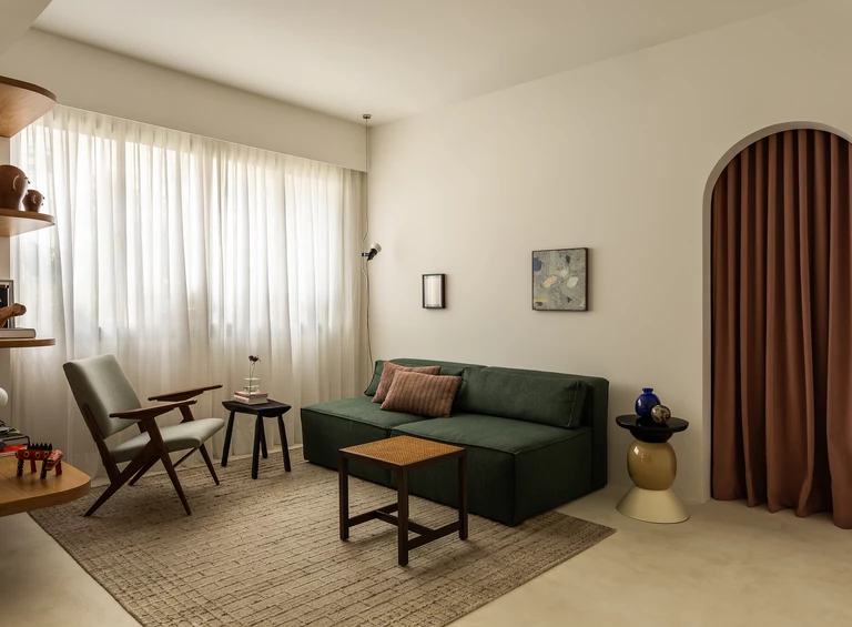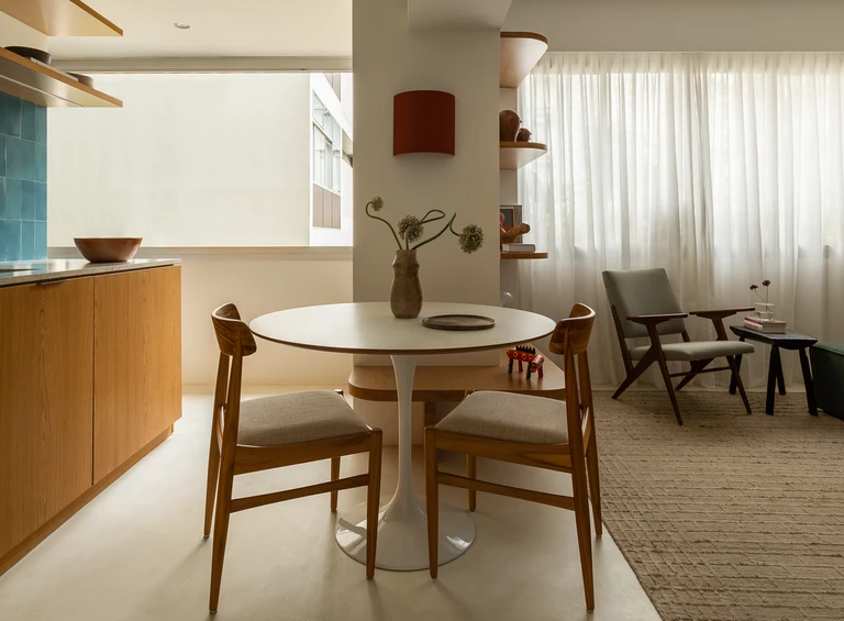 Otwarty układ, dużo światła i miękkie linie. Tak dziś wygląda mieszkanie z końca lat 50., które przeszło całkowitą metamorfozę pod okiem Federico Concilio z brazylijskiej pracowni Studio Gaibola. Pomimo małego metrażu, jest funkcjonalne i robi wrażenie.