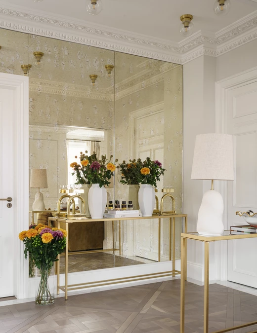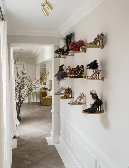 Dodatkowo – w celu wprowadzenia do aranżacji ponadczasowego charakteru – projektantka dodała do wnętrza ozdobne gzymsy i sztukaterie. Istotnym elementem aranżacji stała się przy tym moda. Dla przykładu stojące na półkach buty budzą skojarzenie z dziełami sztuki najwyższej klasy.