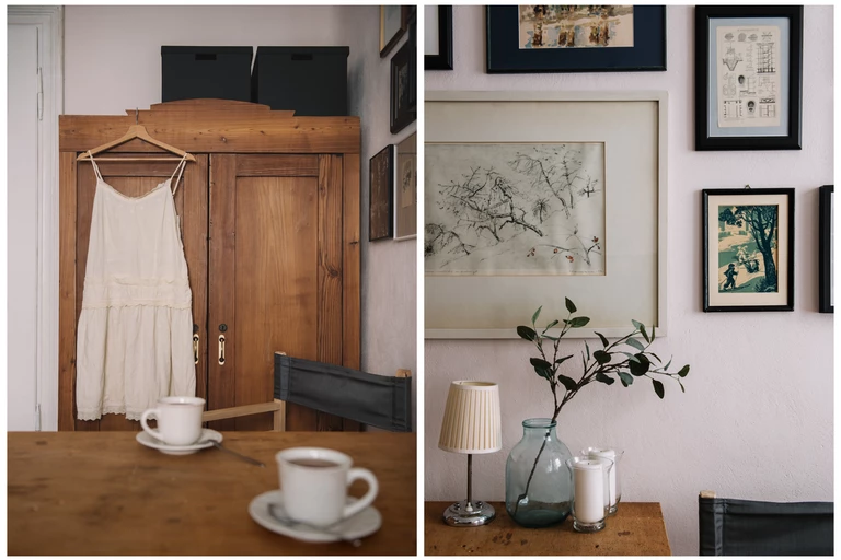 Choć liczy sobie tylko 19 m2 wydaje się bardzo przestronny dzięki swojej wysokości i jasnej kolorystyce, w której dominują biel, naturalny kolor drewna oraz róż. Wyposażenie to głównie starocie – nabyte w miejscowym sklepiku z antykami lub przywiezione przez właścicieli z Wrocławia.