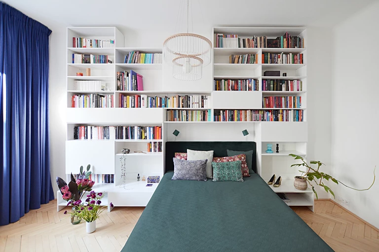 Istotnym zadaniem architekta było zaaranżowanie przestrzeni dla dużej kolekcji roślin oraz książek należących do właścicielki. Ostatecznie kwiaty pojawiły się we wszystkich pomieszczeniach, zaś w salonie odgrywają wręcz rolę pierwszoplanową. Miejsce na bogaty księgozbiór wygospodarowano w sypialni poprzez zabudowanie ściany za łóżkiem systemem półek i szafek.