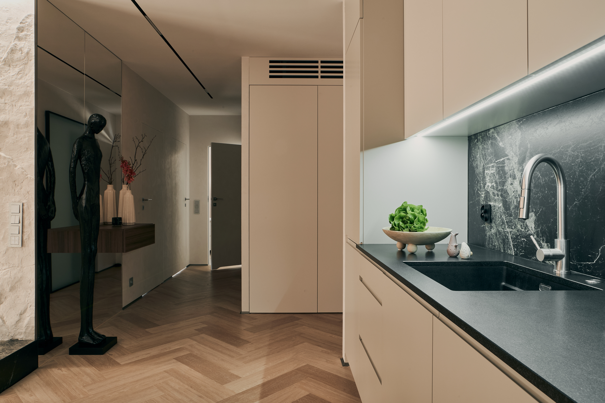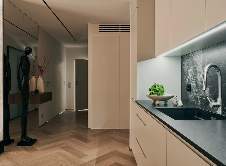 W nowoczesnej dzielnicy Gdańska, Letnicy, powstała przestrzeń będąca azylem po intensywnym dniu. Michał Ziuzia i Maciej Szałkowski z pracowni projektowej Lussoo stworzyli wnętrze konsekwentne w formie i przemyślane w każdym calu. Efektem jest aranżacja pełna zmysłowego wyciszenia, oparta na estetyce Japandi z subtelnym ukłonem w stronę minimalizmu.