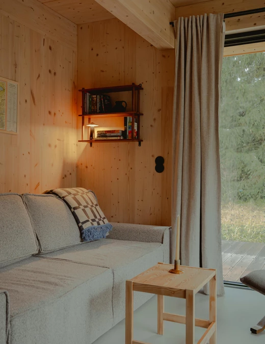 Komfort i funkcjonalność rozumiane są tu przez pryzmat detali: odpowiedniego światła, miejsca do przechowywania, wygodnych proporcji. „W procesie bardzo pomocna okazała się także analiza istniejących lokali wypoczynkowych na wynajem – zastanawiałyśmy się, czego w nich brakuje pod względem komfortu i funkcjonalności. W praktyce często to właśnie drobne elementy decydują o tym, czy gość czuje się swobodnie w danej przestrzeni".