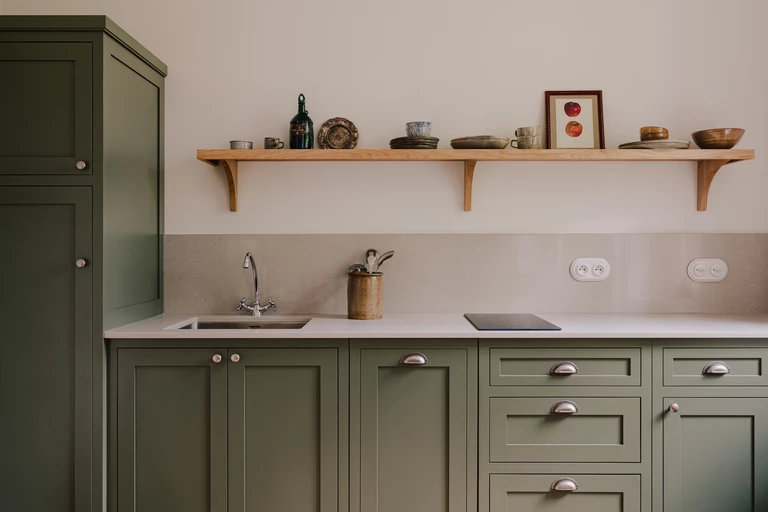 Stalowa klatka schodowa została odrestaurowana, a meble sosnowe otrzymały nowe kolory i detale, przywracające im świeżość. Kolorystykę projektu wnętrz Willi Lawenda oparto na harmonijnej palecie naturalnych kolorów, takich jak beże, relaksująca zieleń, głęboki granat, delikatne odcienie szarości oraz niebieskiego. Zastosowane materiały i barwy tworzą  razem ciepłą i przytulną atmosferę.