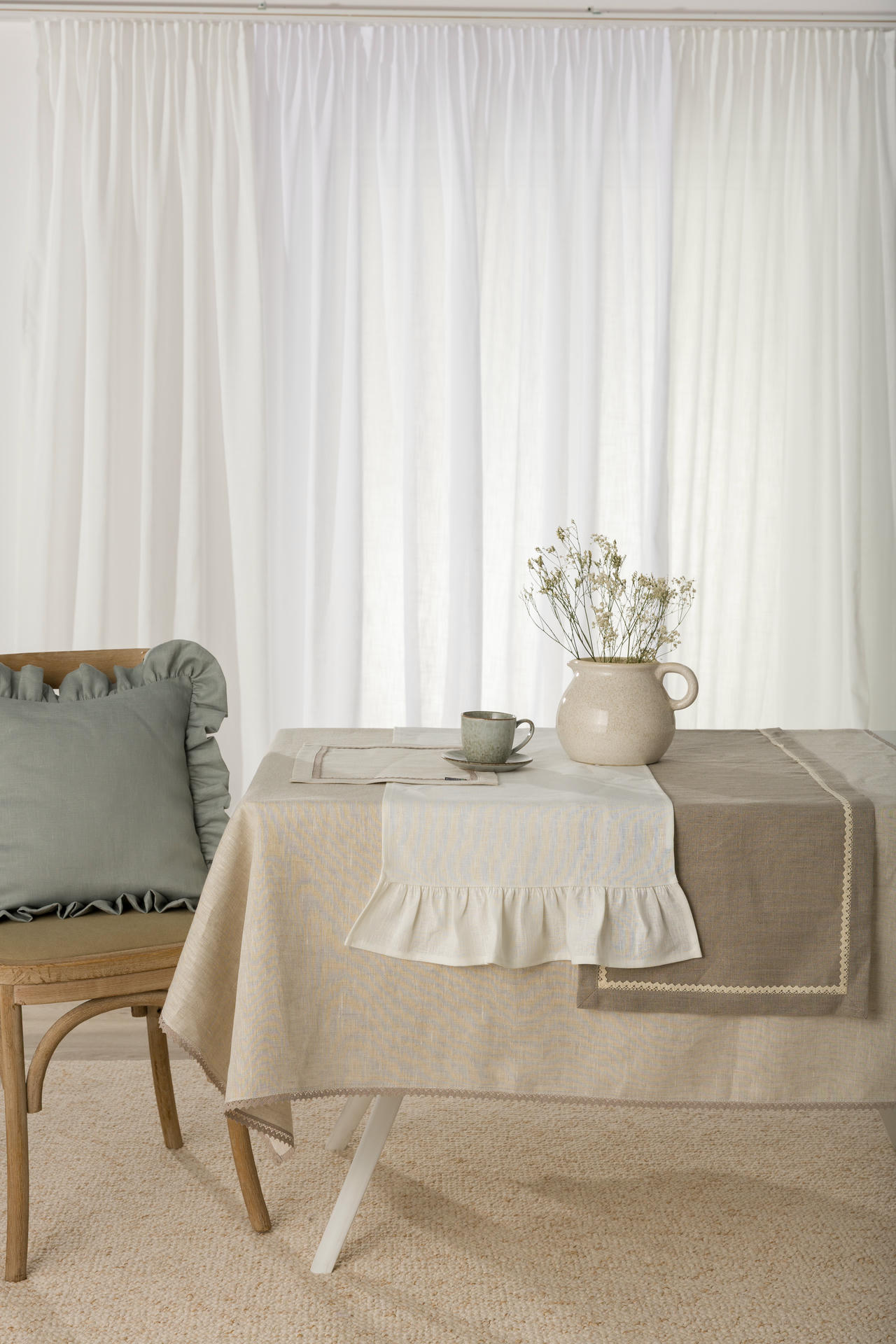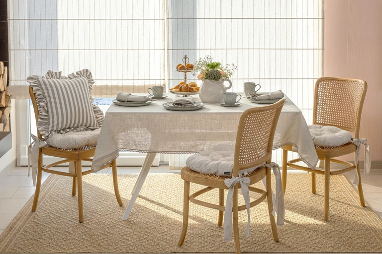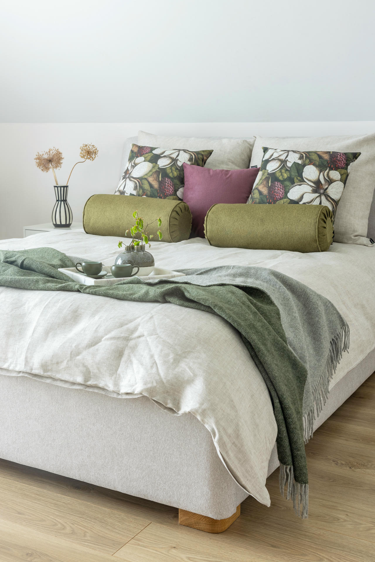 Pościele z lnu łączą komfort snu z estetyczną prostotą, ich przewiewność i miękkość sprzyjają regeneracji niezależnie od pory roku. W strefie jadalnianej obrusy i bieżniki z naturalnych włókien dodają codziennej elegancji, natomiast poduszki dekoracyjne i narzuty wprowadzają miękkość i spójność. To właśnie takie detale nie dominują przestrzeni, lecz dyskretnie ją dopełniają, tworząc harmonijną całość.