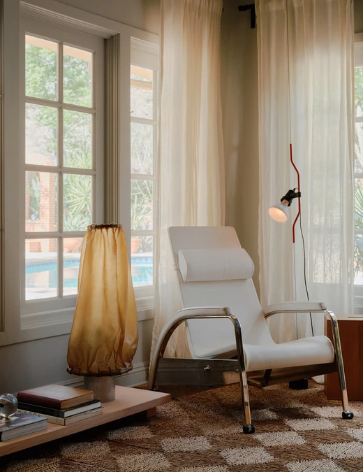 Zabie Mustafa i Neda Kakhsaz ze Studio MUKA stworzyli dla siebie przestrzeń do życia i pracy w domu położonym u podnóża gór Santa Monica w Los Angeles. Modernistyczny dom z lat 50. stał się osobistym projektem projektantów, łączącym sztukę, rodzinne pamiątki i autorskie meble.