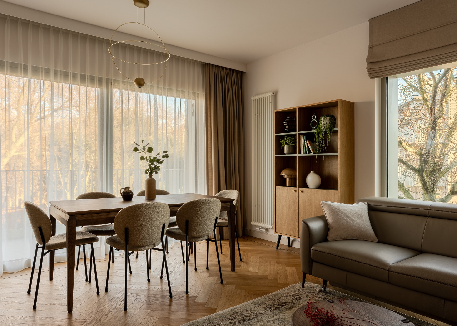 Wrocław, sąsiedztwo parku i 80 metrów kwadratowych, które zespół NOM studio zamienił w azyl pełen światła. Ten trzypokojowy apartament opiera się na rozwiązaniach, które zostaną z domownikami na lata, bez względu na zmieniające się mody. Projektanci postawili na klarowny podział stref oraz materiały budujące przytulną, a jednocześnie uporządkowaną atmosferę.