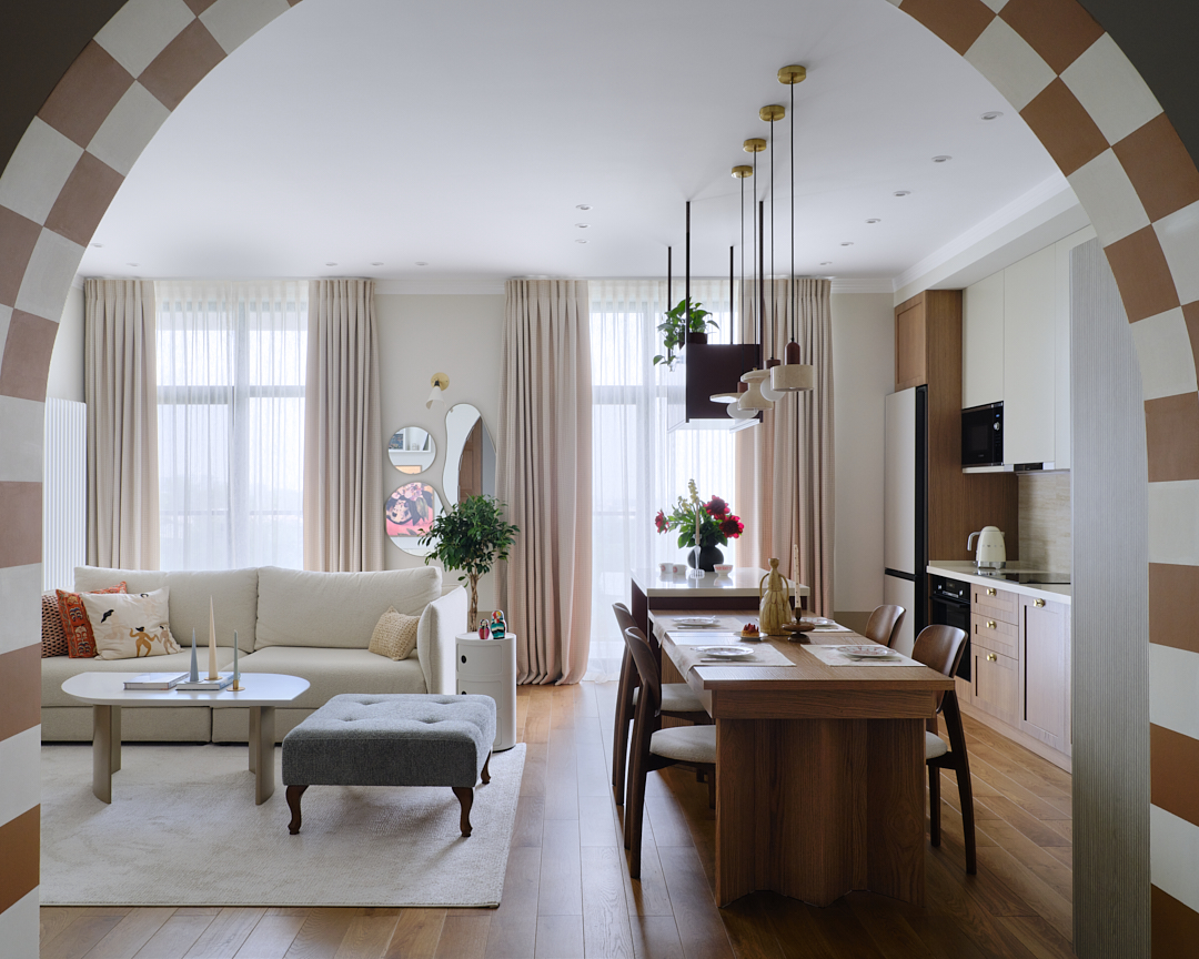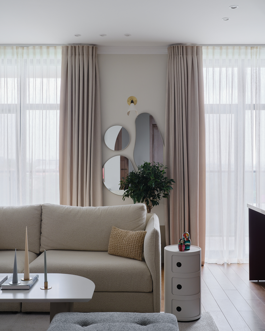 Aisha Adilshiyeva ze studia Ida Design Mates odpowiedziała na tę potrzebę współczesną estetyką, która komplementuje czystą architekturę budynku, charakteryzującą się precyzyjnymi liniami i panoramicznymi oknami.