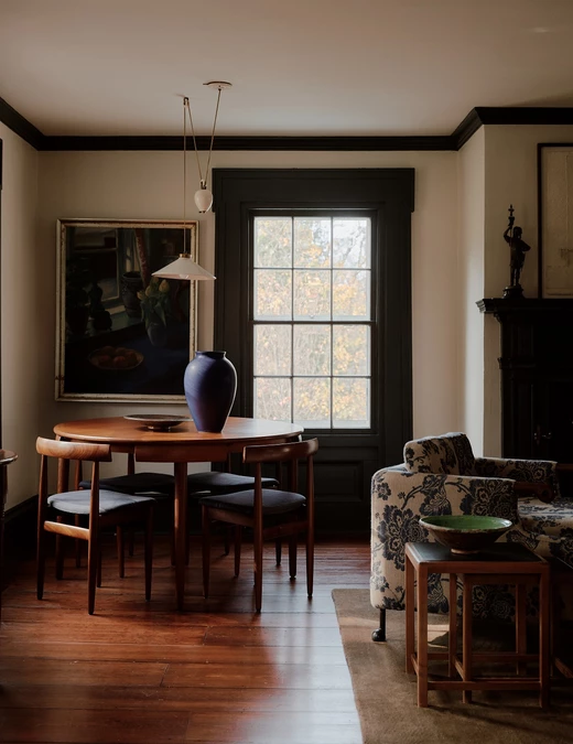 Wiejski dom w dolinie rzeki Hudson powstawał etapami przez ponad dwa stulecia. Kolejni właściciele rozbudowywali go, dopisując własne historie. Obecny kształt wnętrz nadała pracownia Chused & Co, która postawiła na zachowanie wielowarstwowego charakteru budynku i na tej podstawie zaprojektowała przestrzeń dostosowaną do współczesnego życia oraz spotkań w większym gronie.