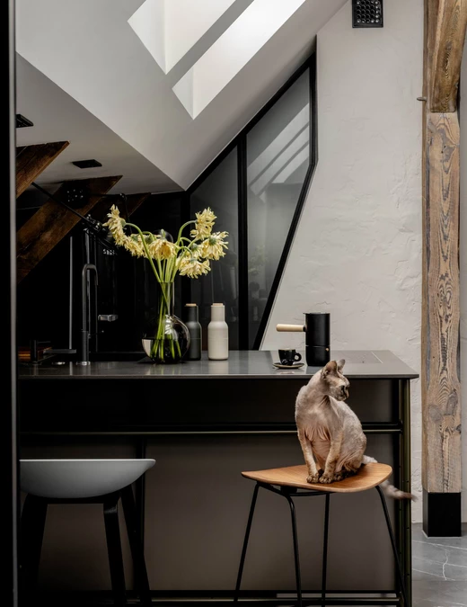 Głównym założeniem było wydobycie ukrytego potencjału zapomnianej przestrzeni. W dawnej suszarni stylowo łączy się tradycja i współczesność. Mieszkanie jest spokojnym azylem z widokiem na lipy i niebo.