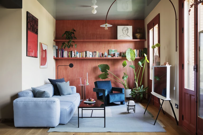 Architekci z pracowni Plutarco z wyczuciem połączyli tu historyczne wzornictwo z współczesnymi rozwiązaniami projektowymi. Ostatecznie jednak najważniejszą rolę w projekcie grają kolory. Podczas pracy nad aranżacją Ana i Enrique inspirację czerpali głównie z twórczości wielkich mistrzów – Le Corbusiera i Alvara Alto. Stąd w aranżacji dominują barwy ze słynnej klawiatury kolorów Le Corbusiera, zwłaszcza ciepły kolor sjeny i błękit. Z kolei z projektu wnętrza sanatorium w Paimo autorstwa Alvara Alto projektanci zaczerpnęli pomysł na zastosowanie połyskującej farby na sufitach, która optycznie powiększyła mieszkanie.