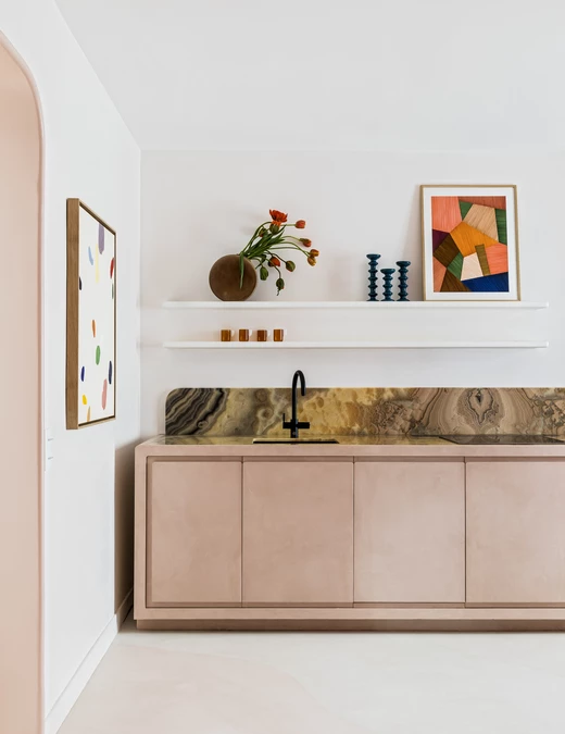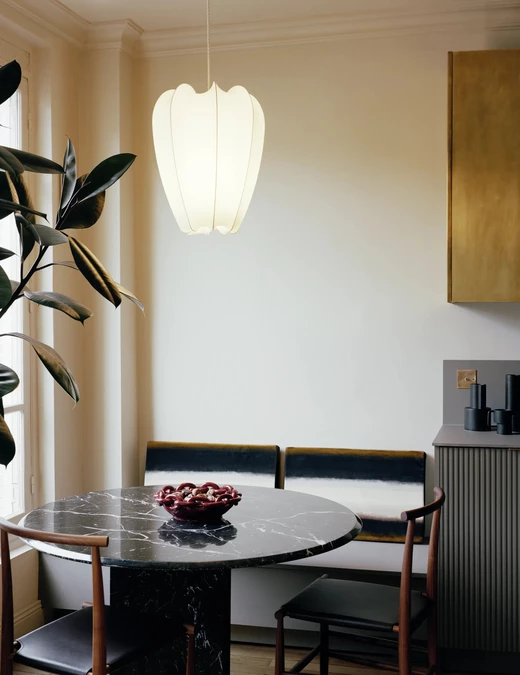 Londyński inwestor chciał stworzyć wygodny, weekendowy apartament w Paryżu, w którym znajdzie się sporo przestrzeni dla towarzyskich spotkań. Zaadoptowanie 32 m2 powierzchni w taki sposób, aby spełnić wszystkie marzenia inwestora, okazało się sporym wyzwaniem, któremu architekci z pracowni Corpus Studio podołali. Ostatecznie dokonany przez nich wybór mebli jest bardzo eklektyczny – postawili na mieszankę zabytkowych znalezisk z pchlego targu w Saint-Ouen, projektów dizajnerów z drugiej połowy XX wieku i współczesnych dodatków.