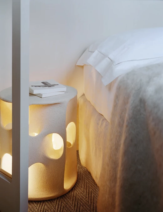 Rue de Seine, położona w historycznej dzielnicy Saint-Germain-des-Prés, jest sercem paryskich galerii sztuki i dizajnu. Właśnie tutaj znajduje się 80-metrowe mieszkanie, za którego projekt wnętrza „035RDS” odpowiada francuska projektantka Bérénice Curt. Z szacunku do historii lokalu odnowiono oryginalną podłogę w jego części dziennej, co dodało wnętrzu autentycznego charakteru. Zachowano także mozaikę z piaskowca położoną w łazience. Ograniczenie palety kolorystycznej ścian i elementów stałych aranżacji do bieli oraz czerni stworzyło doskonałe tło do wyeksponowania zjawiskowych dzieł sztuki i pereł dizajnu.