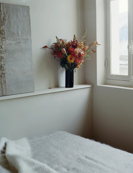 To mieszkanie znajduje się w paryskiej dzielnicy Les Hauts-de-Seine, w trzykondygnacyjnej kamienicy murowanej z około 1920 roku. Należy do 32-letniego kolekcjonera sztuki, pochodzącego z artystycznej rodziny. Neutralna baza kolorystyczna, pojawiająca się na ścianach, podłogach i pozostałych elementach architektonicznych, nadaje apartamentowi ponadczasowy charakter. Nie zabrakło tu jednak również mocniejszych plam koloru: żółtego stołu w kuchni, który dodaje energii, czy musztardowej, aksamitnej sofy oraz skórzanego fotelu w kolorze koniaku, wnoszących do salonu dużo ciepła. Za projekt odpowiada pracownia Corpus Studio prowadzona przez Konrada Steffensena i Ronana Le Grand.