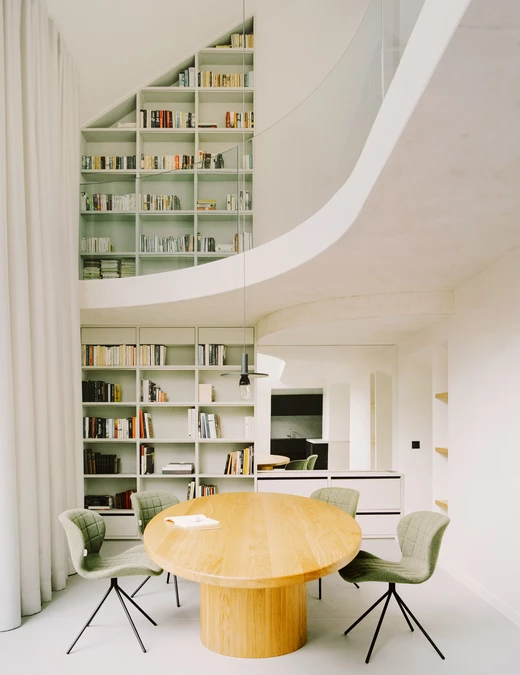 Paryska dzielnica La Défense jest pełna szklanych wieżowców i bezdusznej stali. Ten dziewiętnastowieczny dom to pozostałość po starej tkance miasta, którą wciśnięto w siatkę nowoczesnych drapaczy chmur. Architekci z pracowni Clément Lesnoff-Rocard i Gil Percal stworzyli tu mieszkańcom wygodne schronienie przed monumentalną drapieżnością tutejszej architektury. We wnętrzu zdecydowano się na wiele subtelnych nawiązań do natury: od dębowego stołu, przez znajdujący się na kilku poziomach regał na książki przypominający klif, aż po czarną, matową kuchnię przywodzącą na myśl węgiel drzewny.