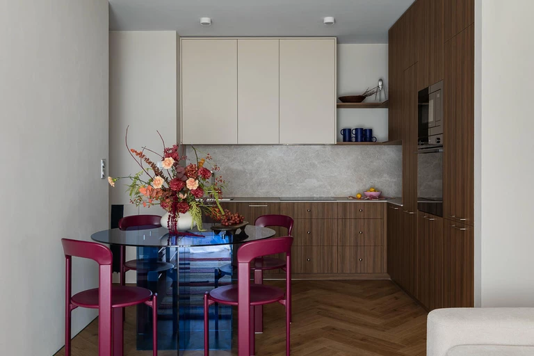 „Nieoczywiste w pierwszym kontakcie, ale otulające” – tak opisują swoje mieszkanie właściciele pracowni 032 Atelier. Chcieli stworzyć tu przestrzeń dopasowaną do ich codzienności: wygodną do życia, gotową na pracę z domu i otwartą na spotkania z przyjaciółmi. Jednocześnie od początku wiedzieli, że w przyszłości mieszkanie trafi na wynajem, dlatego zależało im na rozwiązaniach uniwersalnych, ale z charakterem.