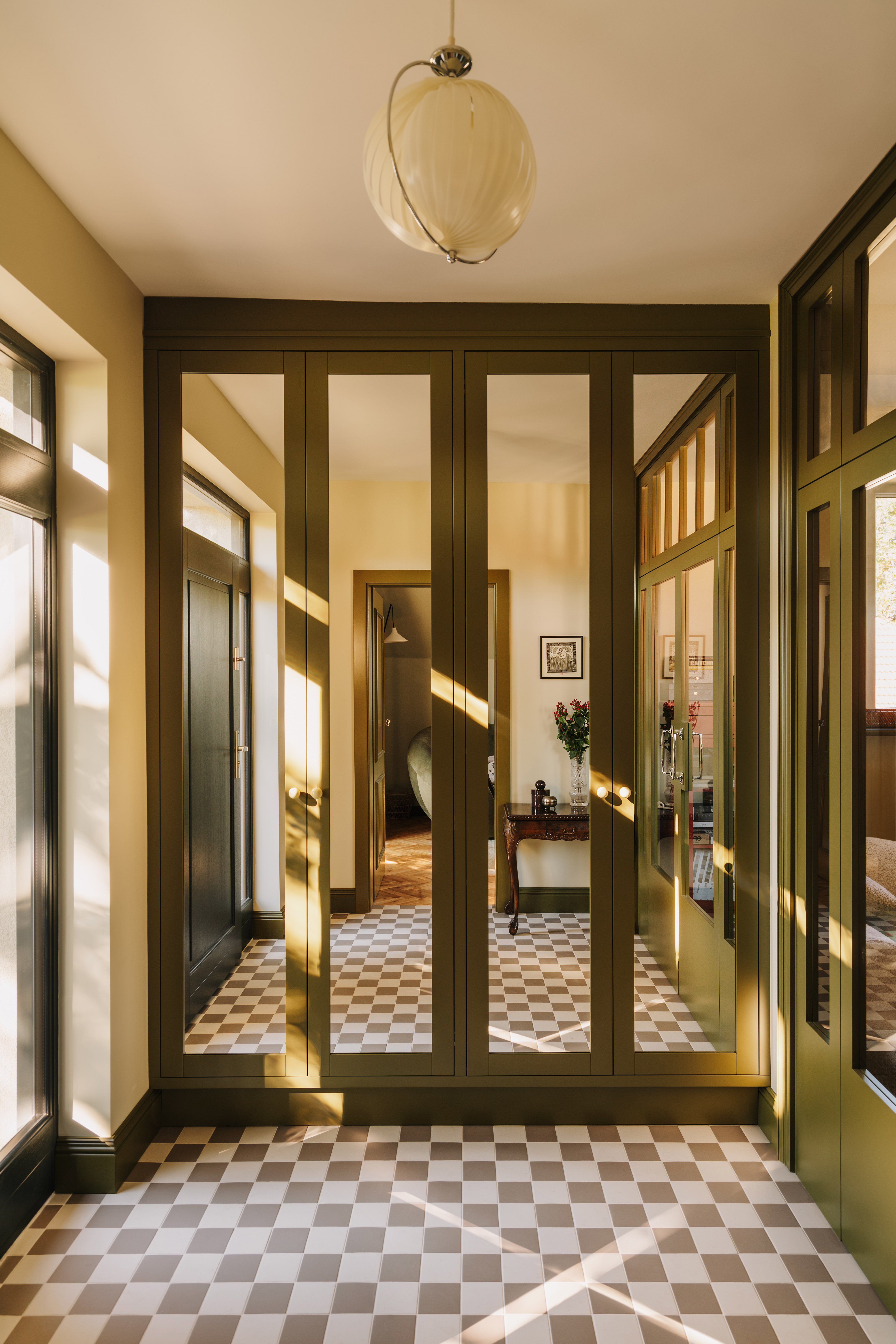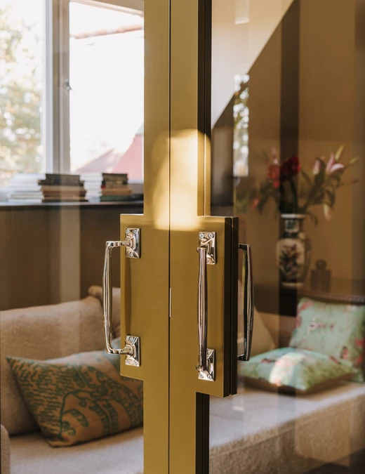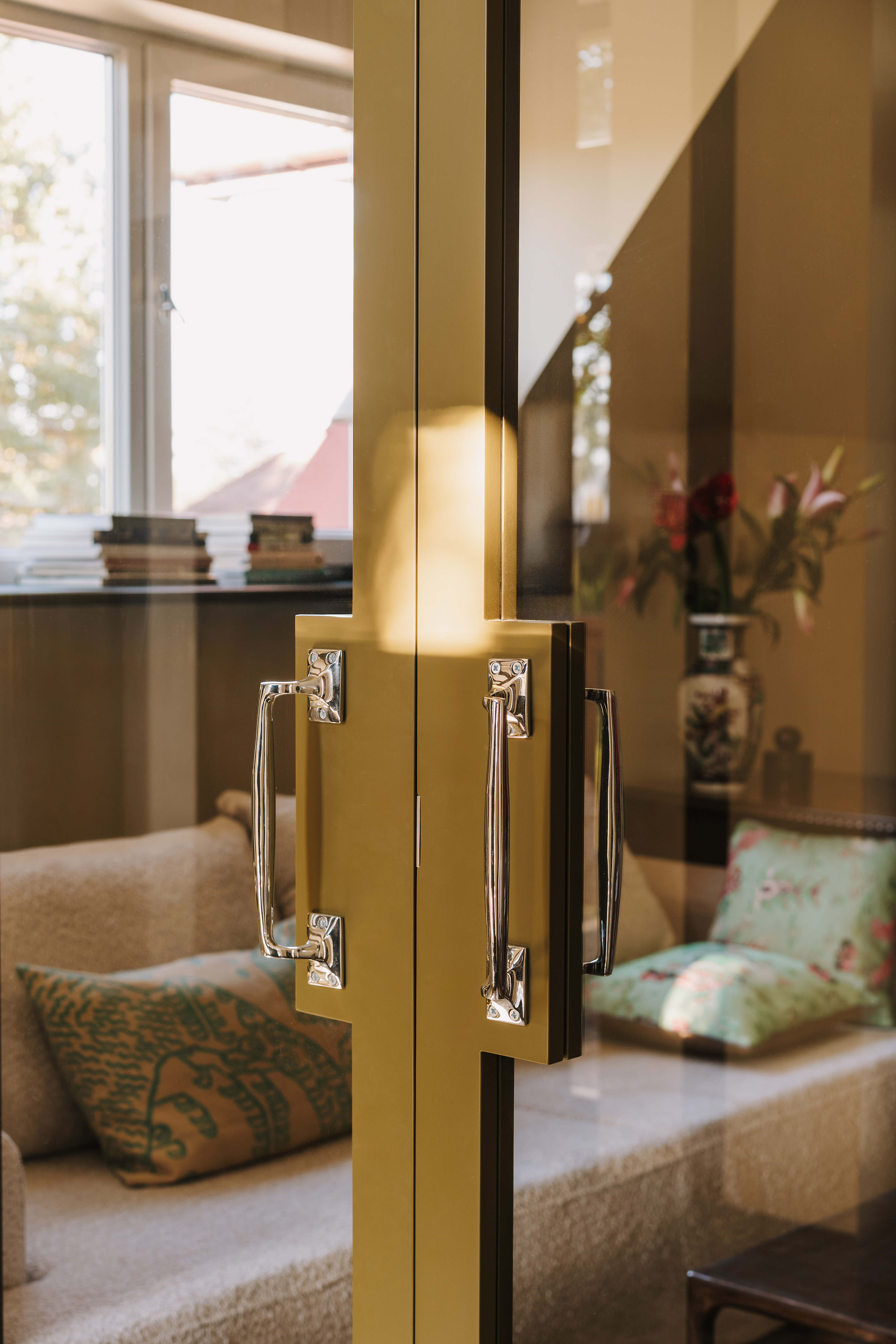 Istotnym wyzwaniem było także zaprojektowanie pracowni, do której mogliby przychodzić klienci. Wejście zaplanowano naprzeciwko drzwi, co pozwoliło wyraźnie oddzielić strefę prywatną od zawodowej i zapewnić domownikom większy komfort.