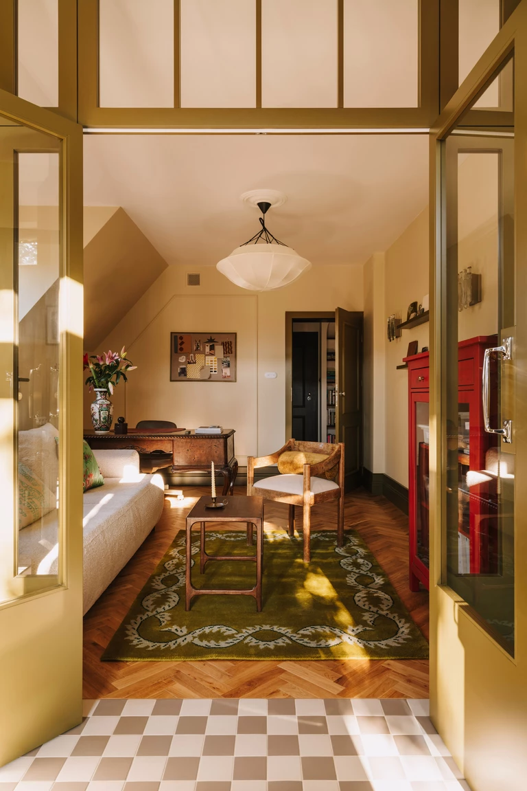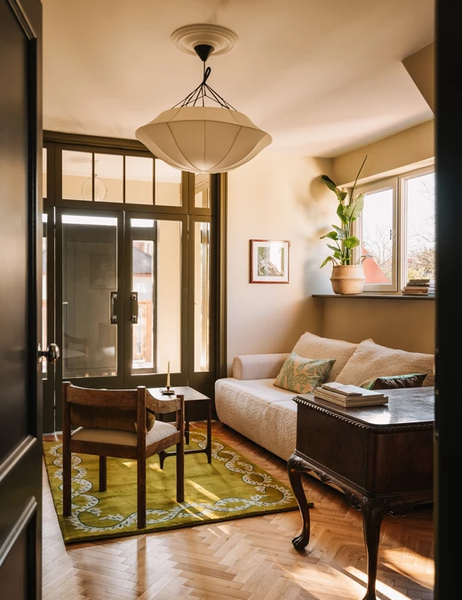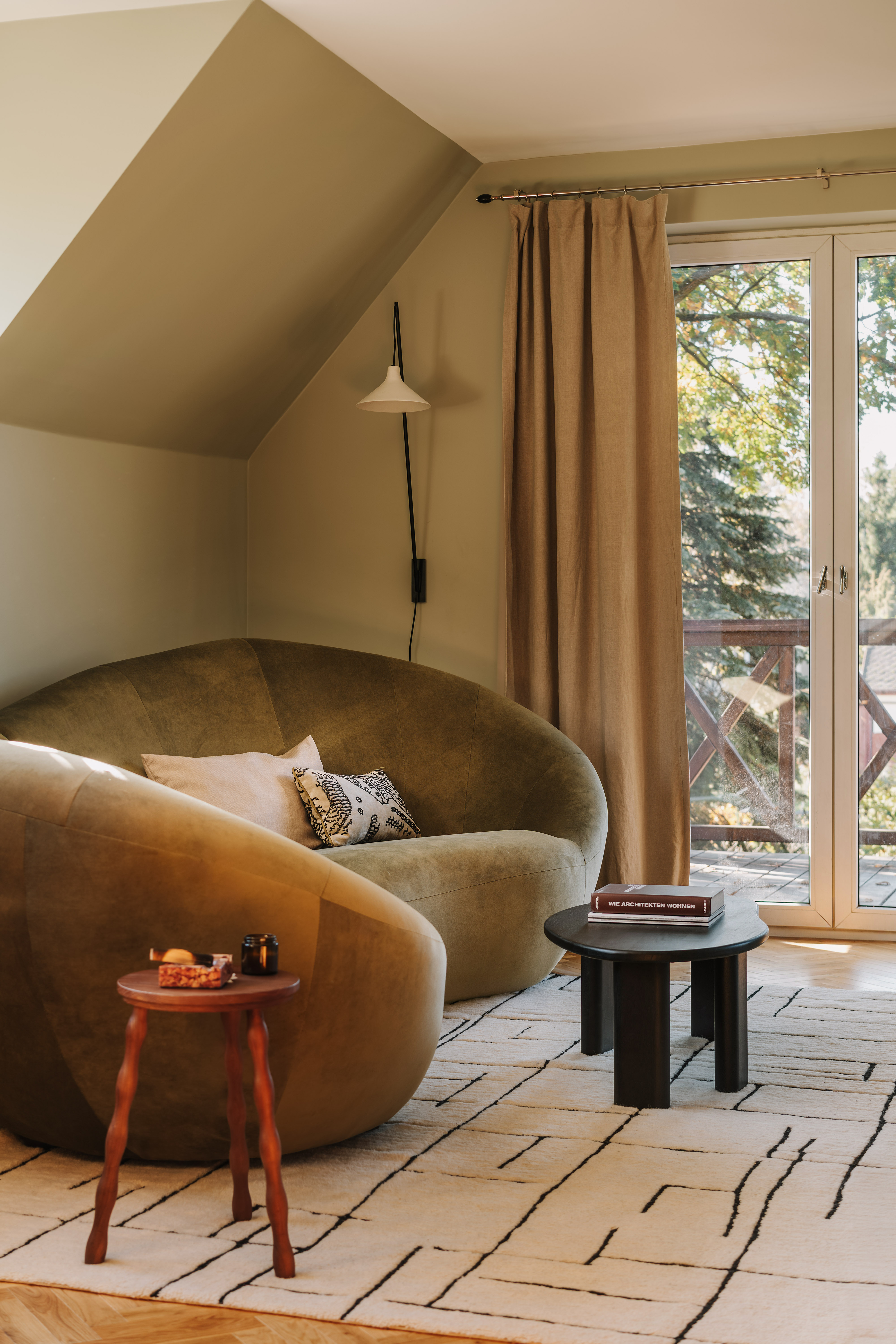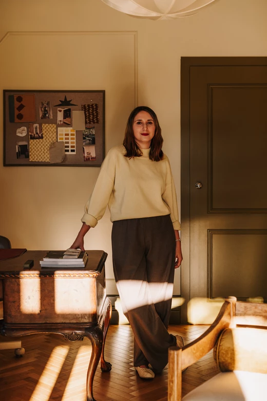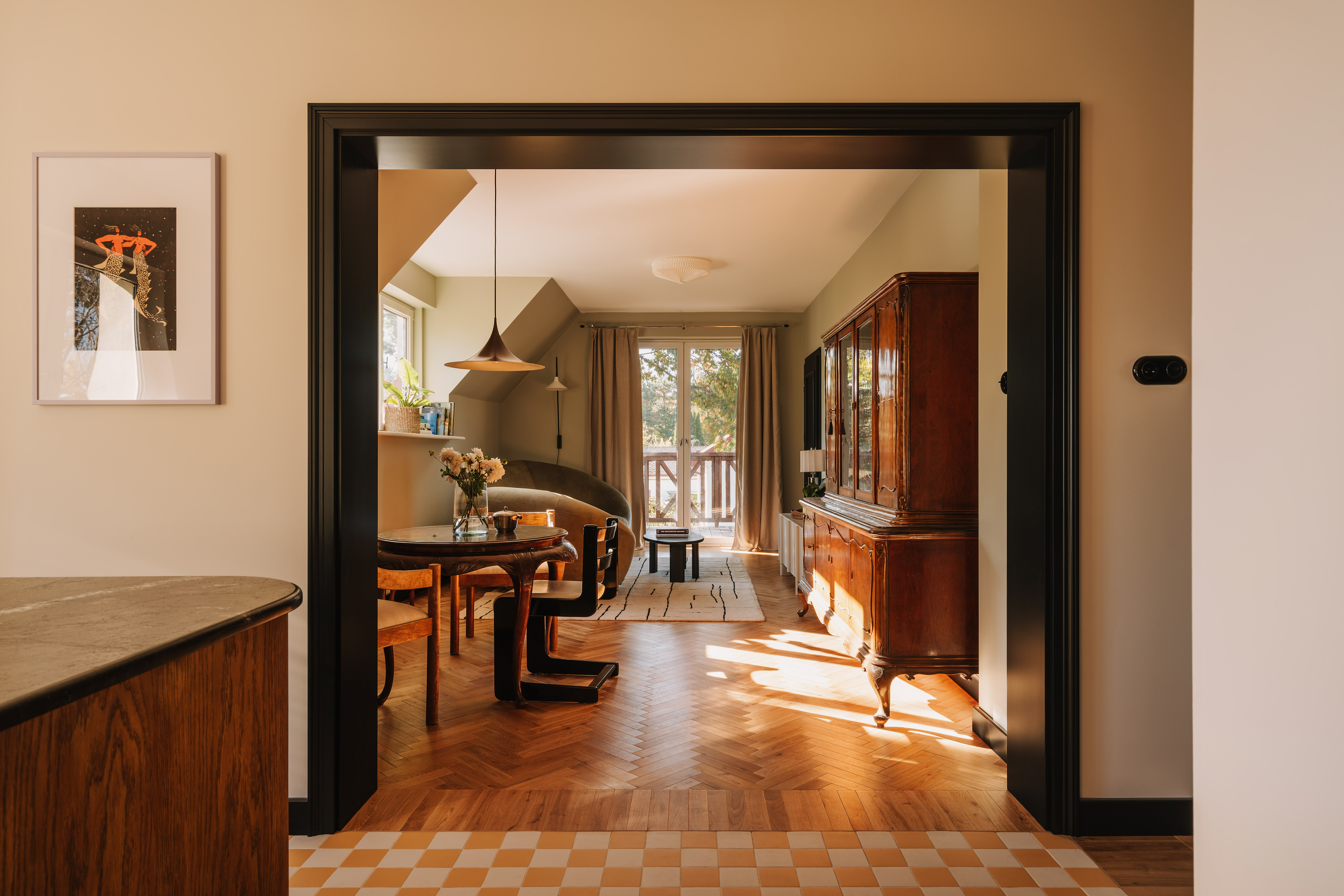 Na warszawskich Bielanach Justyna Ciurzyńska ze studia TAKA PRACOWNIA zaprojektowała dla siebie, swojego partnera oraz małego psa 90-metrowe mieszkanie. Wnętrze, powstałe na piętrze domu z lat 90., jest jednocześnie funkcjonalną przestrzenią do życia i bardzo osobistą opowieścią o kolorze, rodzinnych pamiątkach oraz zamiłowaniu do estetyki vintage.