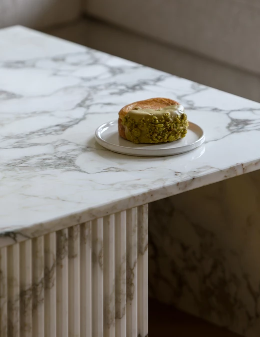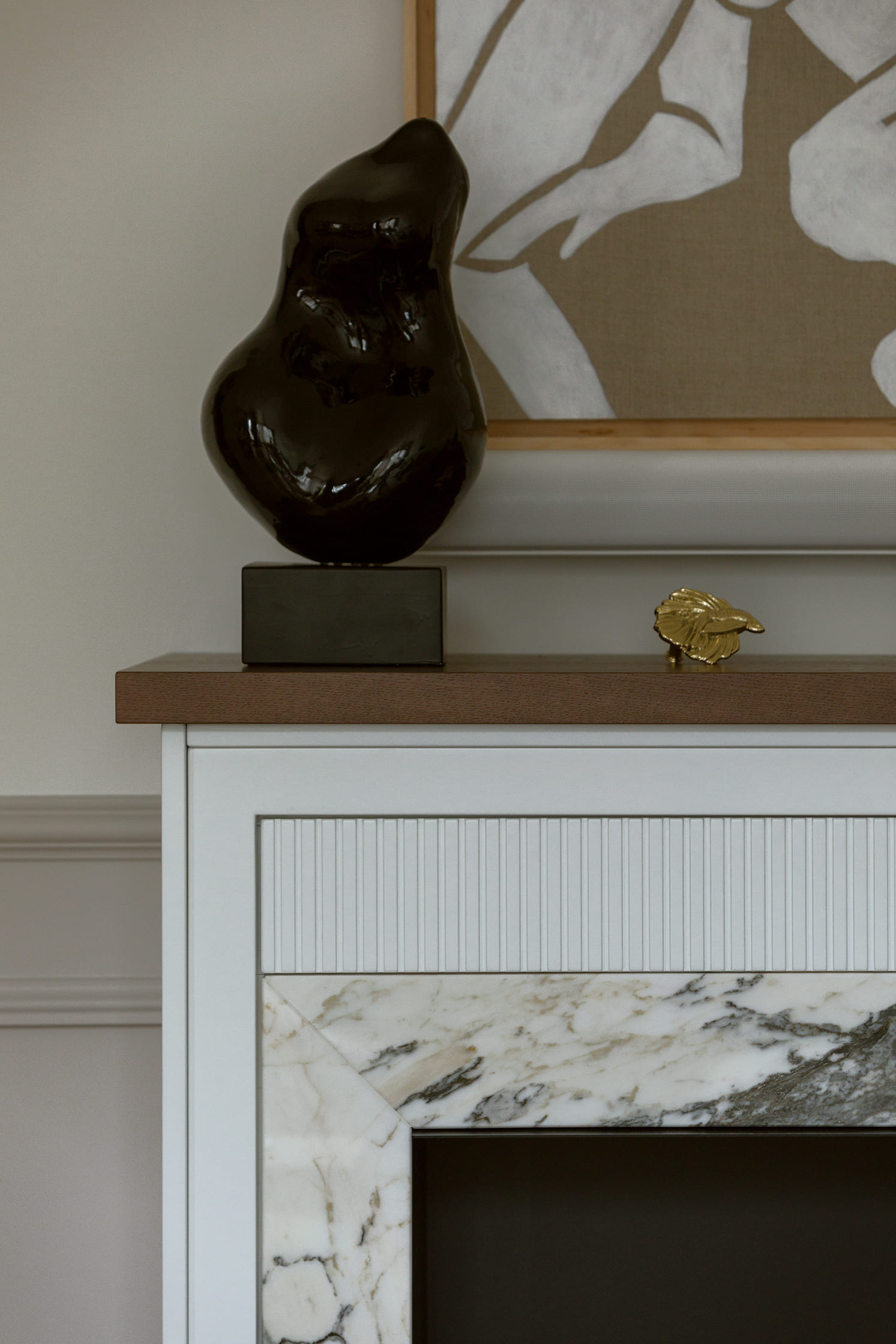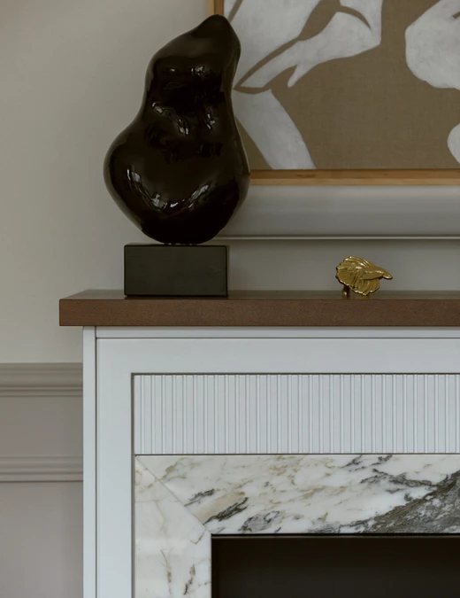 Z tego marmuru powstał nie tylko blat kuchenny, ale także autorski stolik kawowy i portal kominkowy – każdy zaprojektowany od podstaw przez Patrycję Turaj. Nie mogliśmy znaleźć stolika, który w pełni oddałby charakter wnętrza, więc go narysowałam. Potem przekształciłam szkic w model 3D i wspólnie z kamieniarzem zrealizowaliśmy projekt. Marmur ma to do siebie, że jest jak rzeźba – każdy egzemplarz jest jedyny – tłumaczy projektantka.